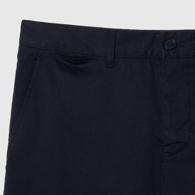 - Slim fit, slightly low-rise.