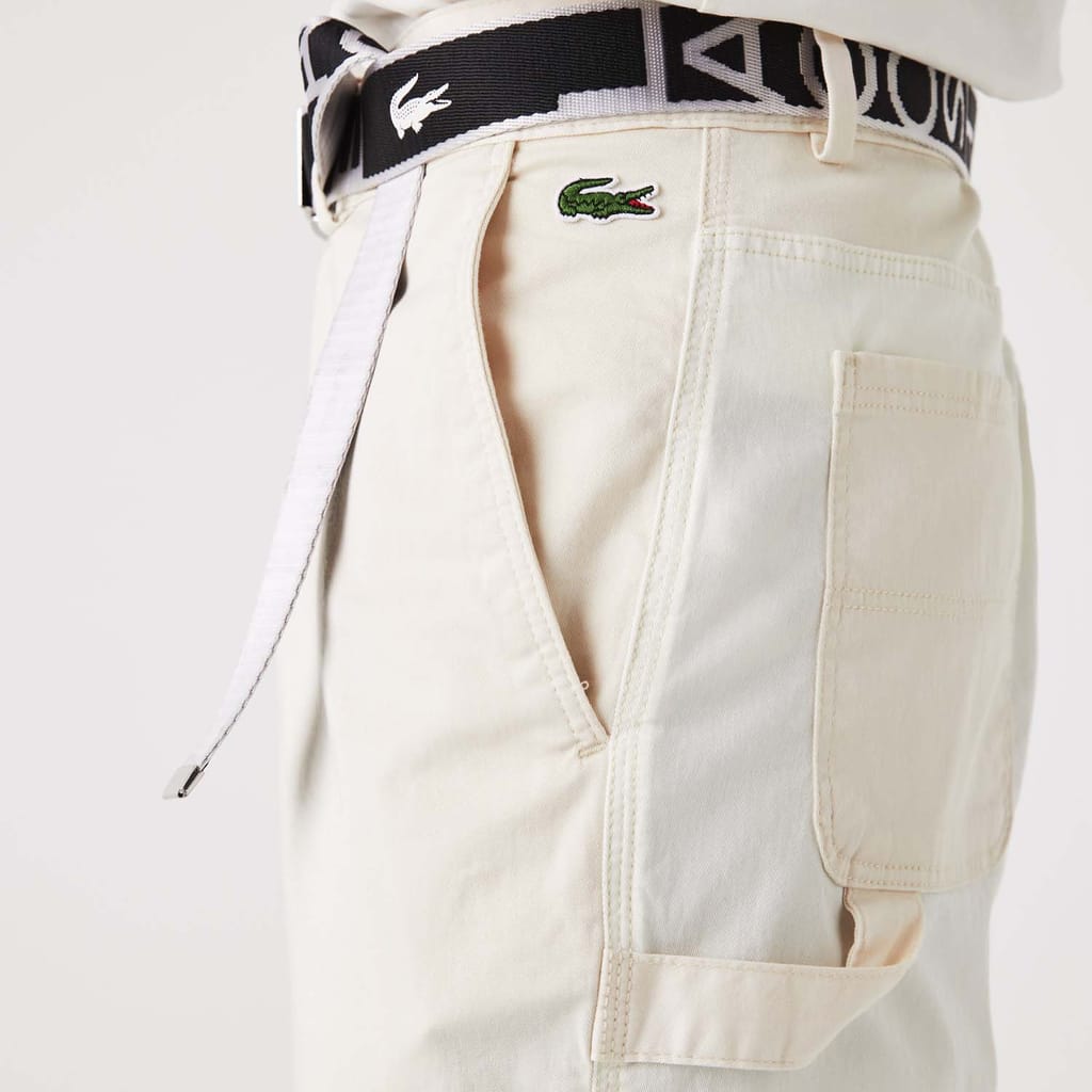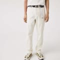 Men's Lacoste L!VE Heritage Patchwork Organic Cotton Trousers Straight fit Organic stretch cotton gabardine Zip fly with button and belt loops Italian pockets, back pockets and vintage Lacoste woven label on back right pocket Green crocodile on side pocket -