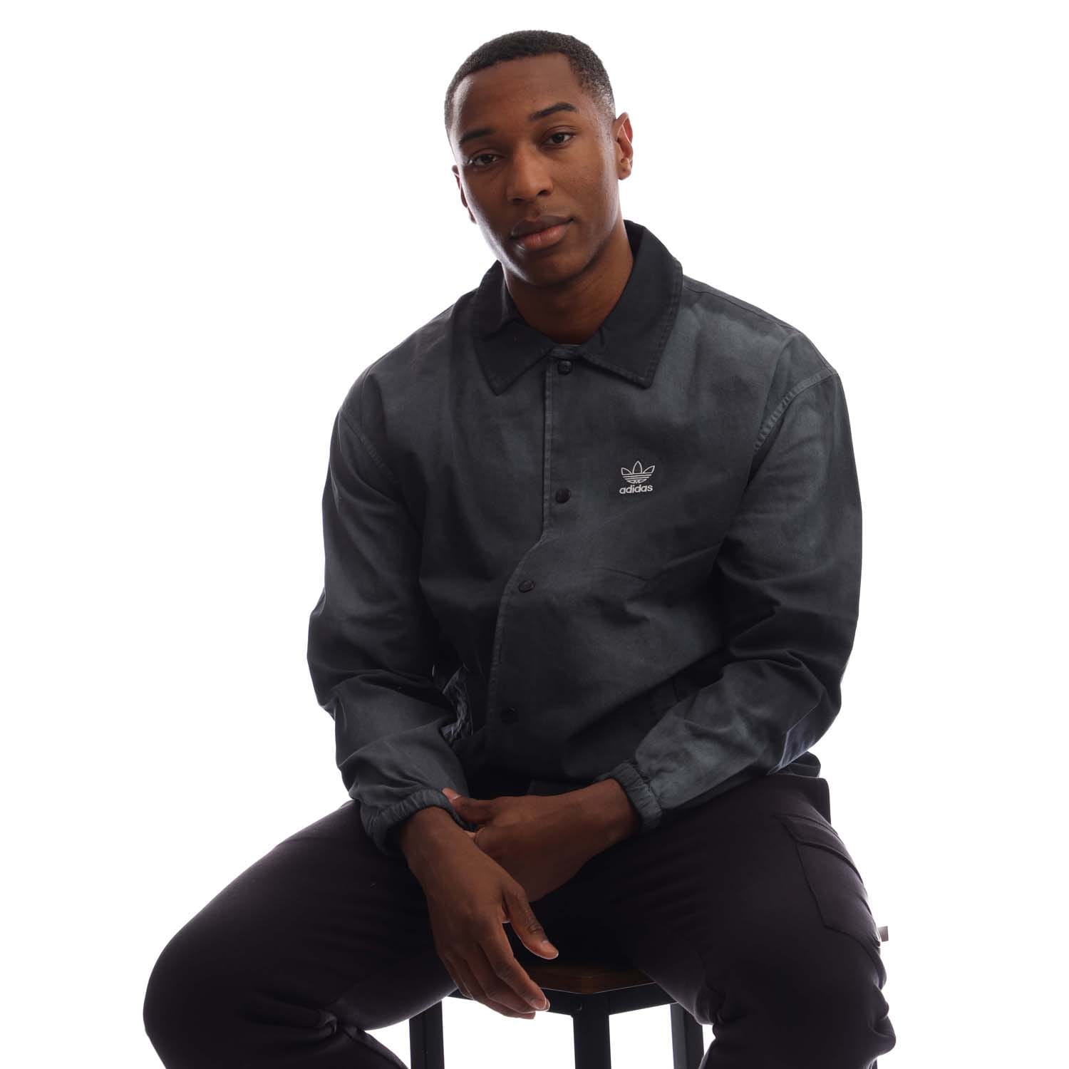 Mens adidas Originals Essentials+ Dye Coach Shirt in black / white.