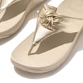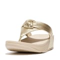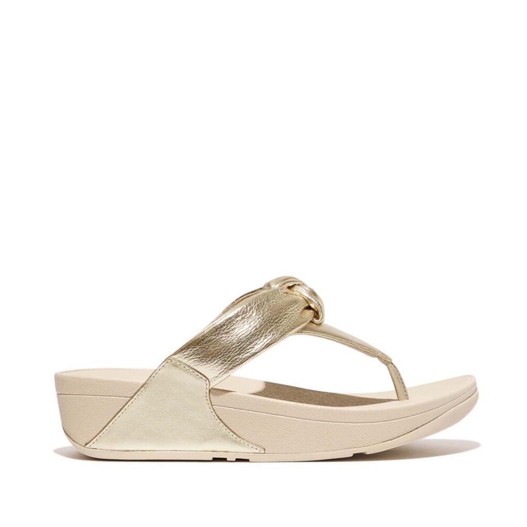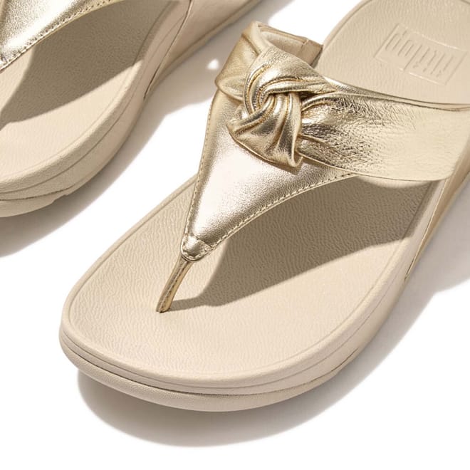 Legendary triple-density Microwobbleboard midsoles, to diffuse underfoot pressure, reduce impact, and deliver non-stop cushioning. Crafted from shimmering metallic leather Padded knotted strap gives simple sculptural detail -