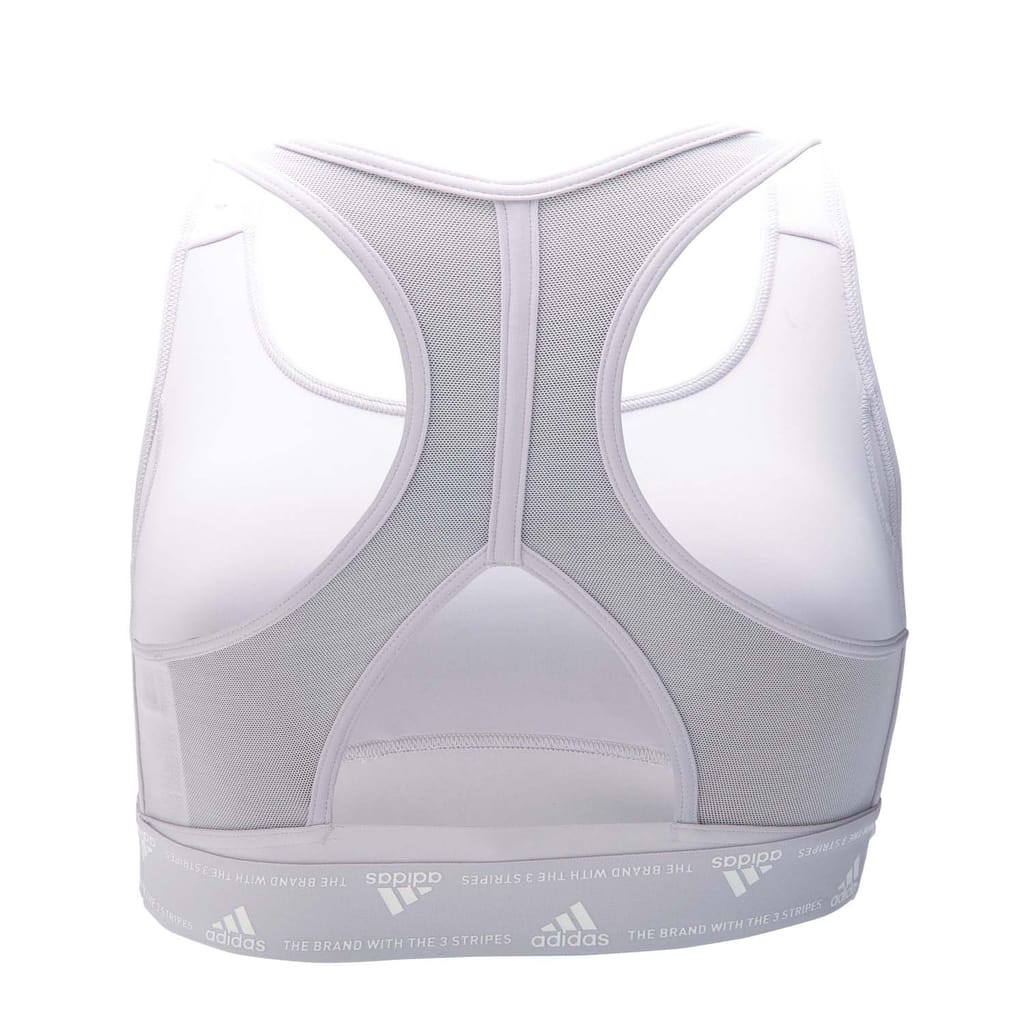 Womens adidas Powerreact Training Medium Support 3-Stripes Bra in silver twilight.