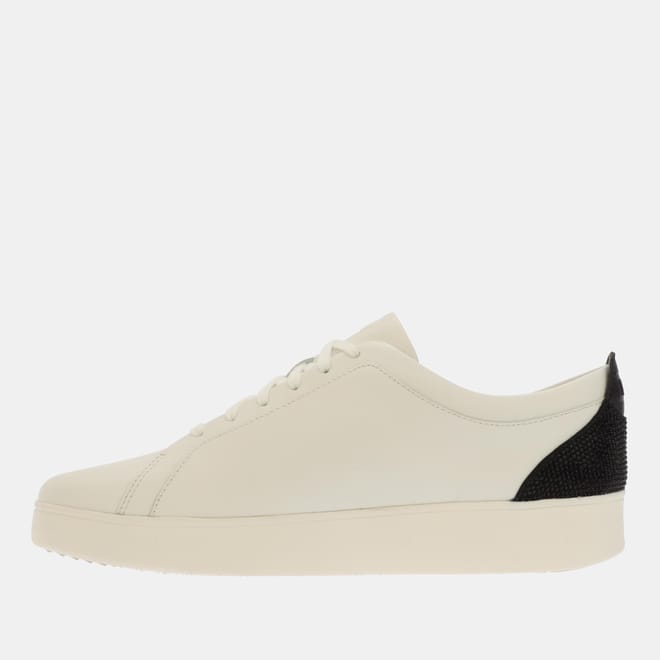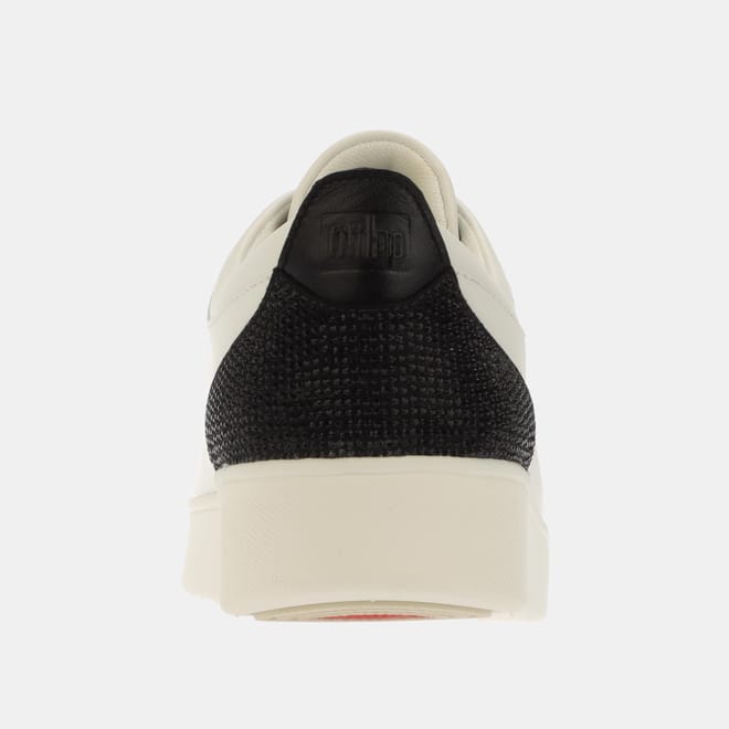 Womens Fit Flop Rally Crystal Backtab Trainers in white black.
