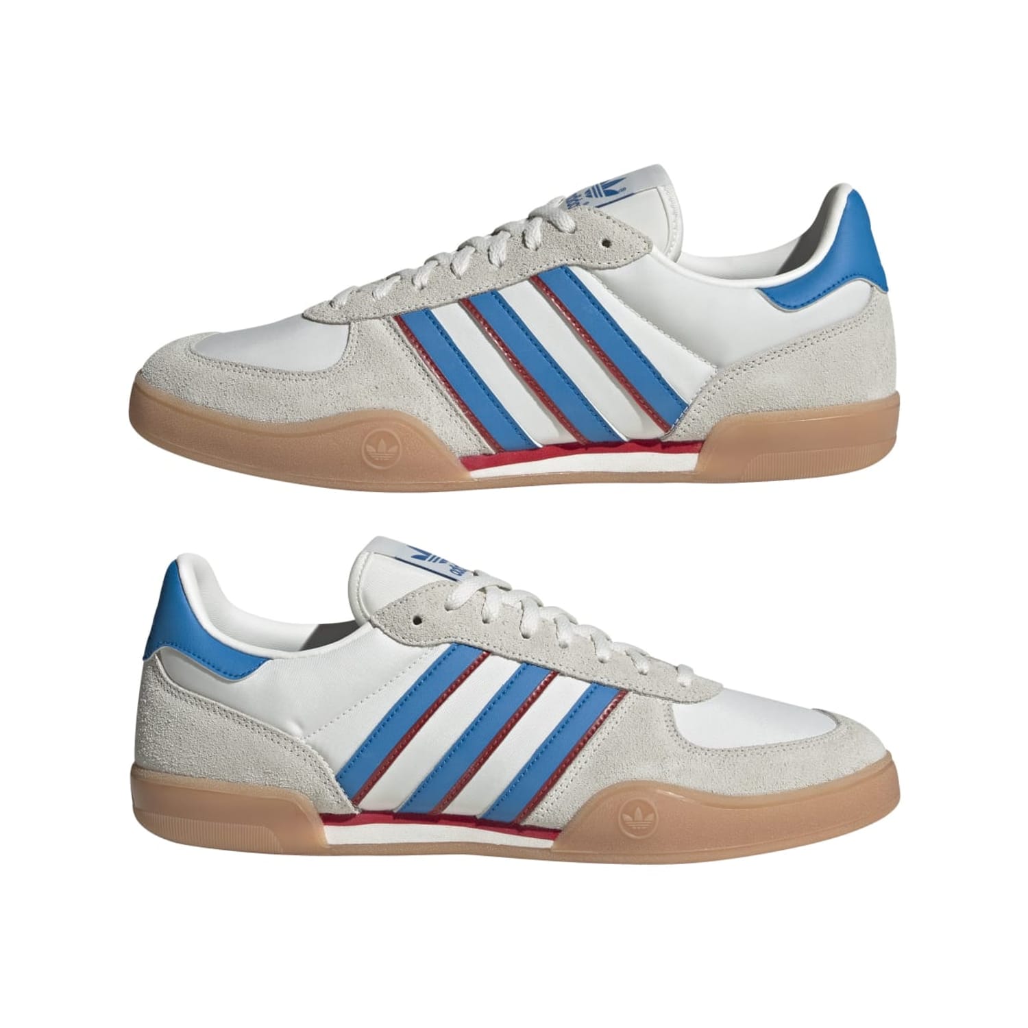 Mens adidas Originals Squash Indoor Casual Trainers in chalk white / bright blue / gum.