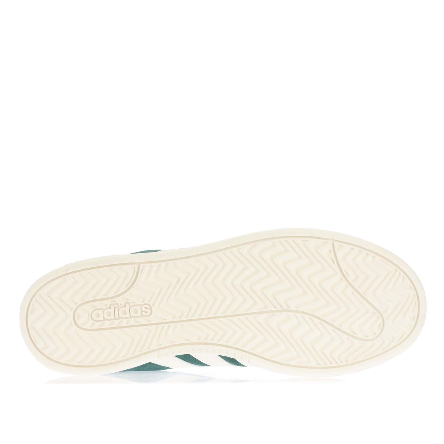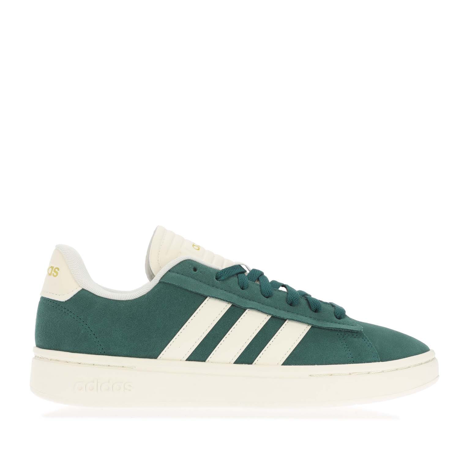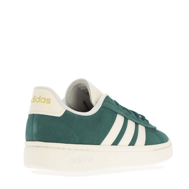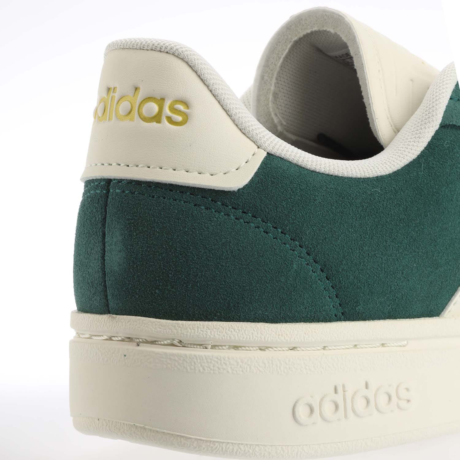 Mens adidas Grand Court Alpha Shoes in collegiate green / off white / gold metallic.