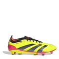 Predator is crafted for one thing: goals. Packed with the latest goal-scoring technology, get ready to send your swerve, power, and control off the charts. Grippy boots for accuracy in front of goal, made in part with recycled materials. Textile upper with Strikeskin grip elements Lace closure Regular fit Hybridtouch 2.0 on forefoot Controlframe 2.0 firm ground outsole -