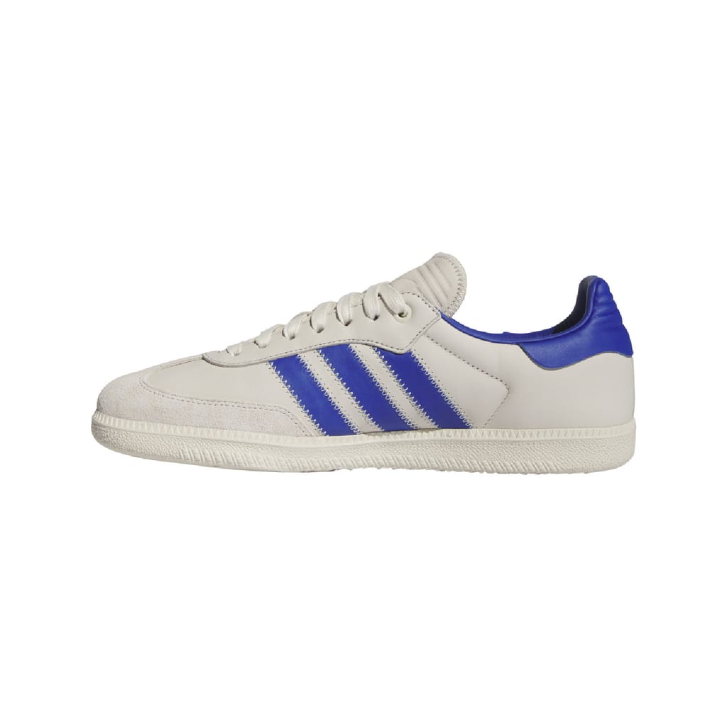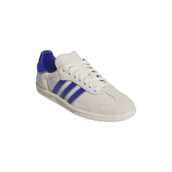 Pharrell and adidas Originals introduce a premium interpretation of an iconic shoe. Modernising the Samba, this special release is a celebration of craftsmanship, quality and the rich heritage of adidas football. The elevated upper is made with leather from ECCO, a maker established in Denmark in 1963 and renowned worldwide for its expertise in high-quality leather. Making their mark in the details, these shoes turn subtle differences into art inspired by craft. Zigzag stitching frames signature 3-Stripes and accents the tongue. A premium suede T-toe stands out in tonal contrast. A floating heel tab rounds out the silhouette.