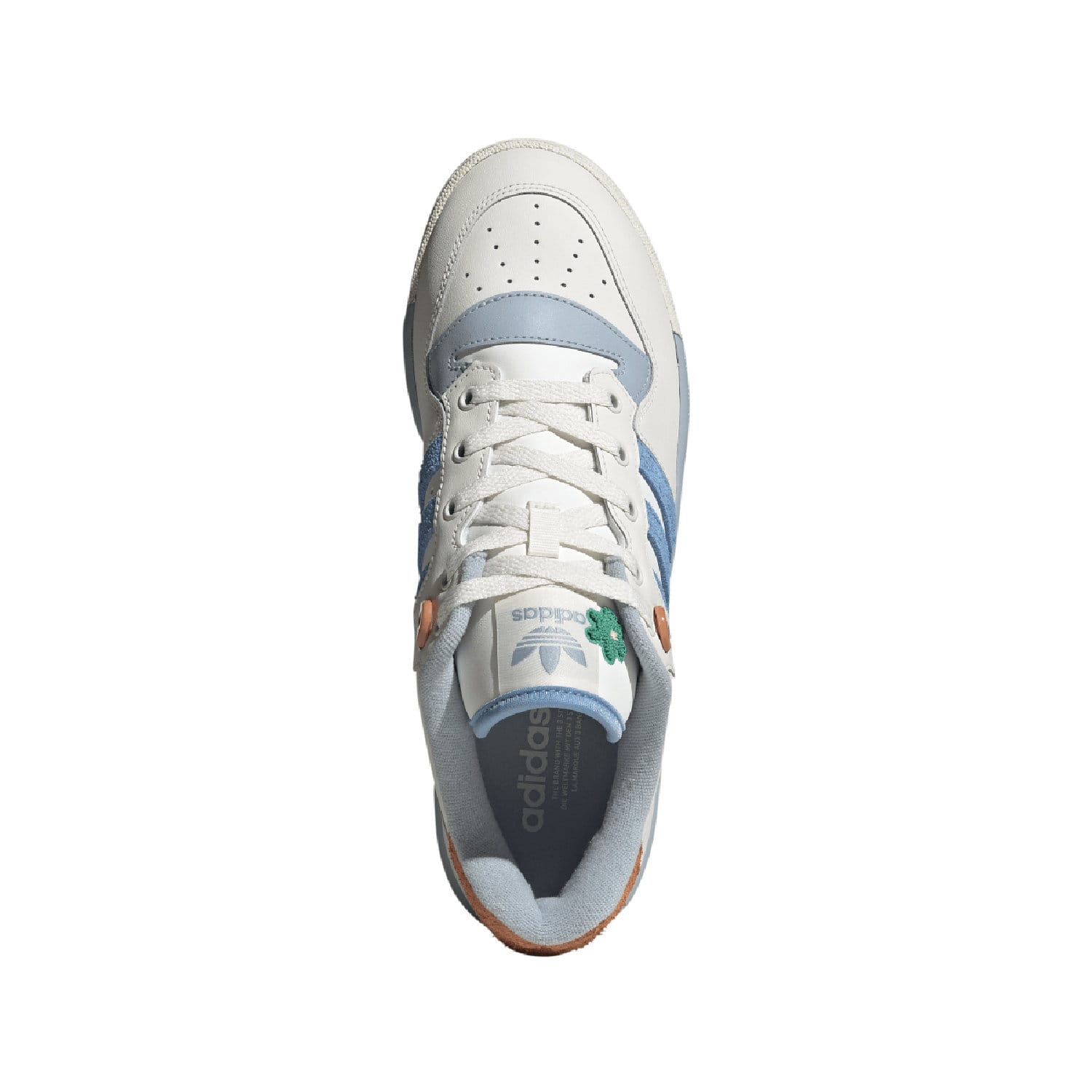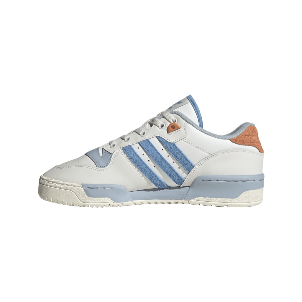 Mens adidas Originals Rivalry Low Shoes in core white / light blue / off white.