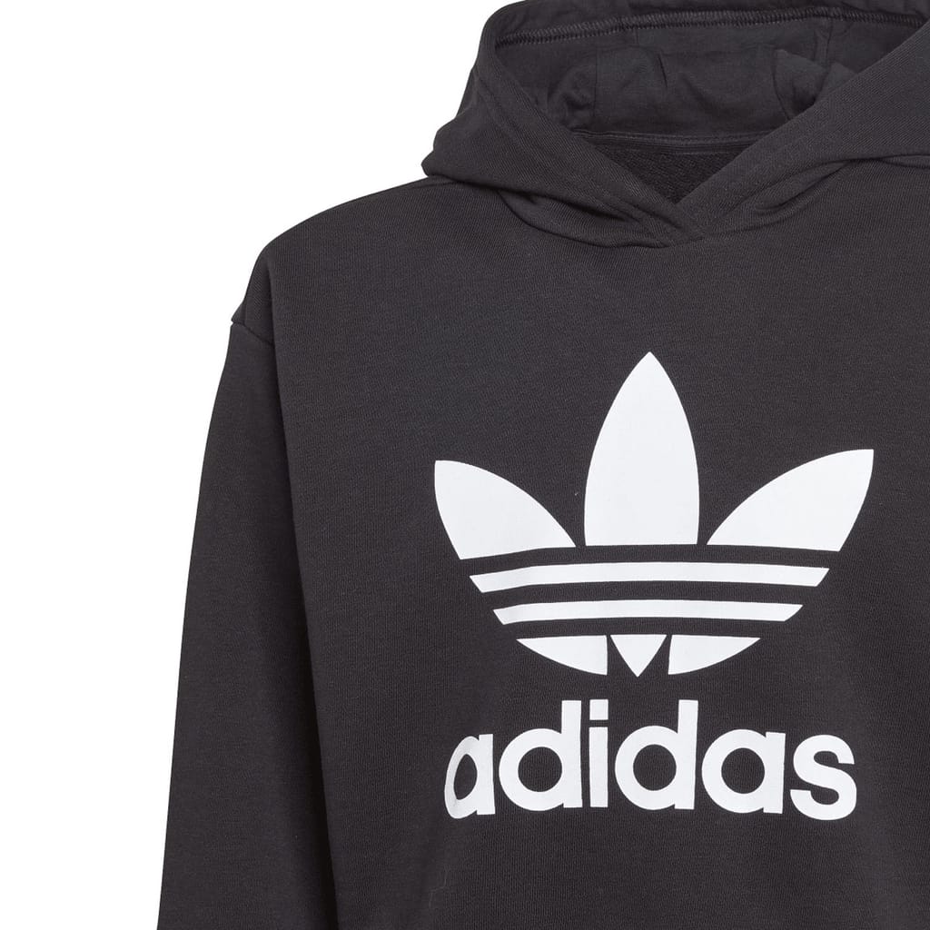 This juniors' adidas cropped hoodie has casual vibes written all over it. The soft French terry fabric keeps you comfortable and cosy, while the loose fit leaves room to layer. Plus, the iconic Trefoil logo ensures everyone knows who you rep. Comfy, cool, and Originals-approved? That's the triple threat. We partner with Better Cotton to improve cotton farming globally. Better Cotton makes global cotton production better for the people who produce it, better for the environment it grows in, and better for the sector's future.Better Cotton is sourced via a chain of custody model called mass balance. This means that Better Cotton is not physically traceable to end products, however, Better Cotton Farmers benefit from the demand for Better Cotton in equivalent volumes to those we "source".Find out more here: bettercotton.org/learnmore