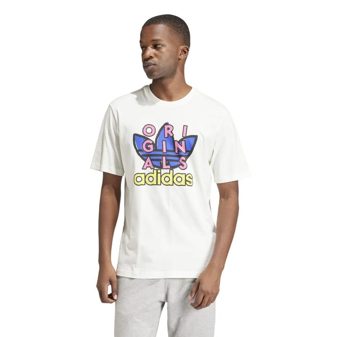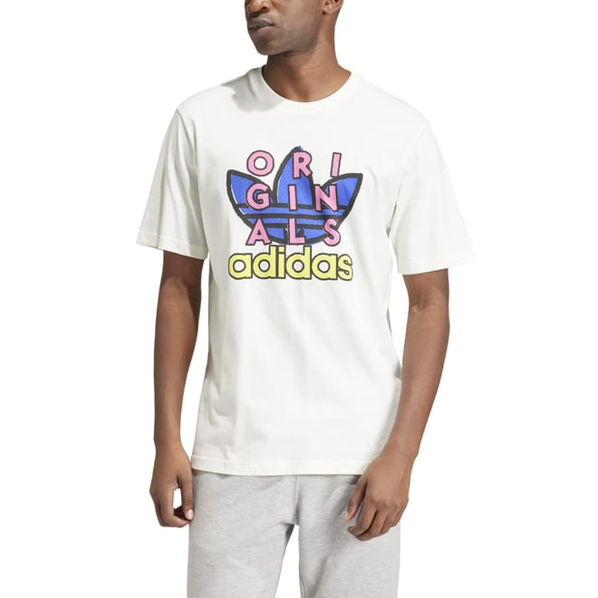 Back to the roots. This adidas tee celebrates our Trefoil heritage in a fresh, contemporary way. Large graphics splashed across the front represent the way adidas Originals brings together sport and culture. Slip into the soft cotton and let the artwork become your statement.