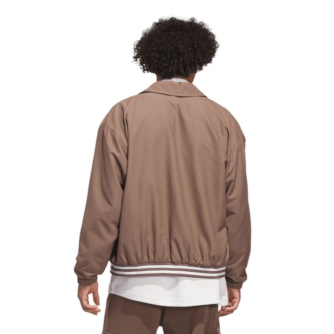 This adidas coach jacket reimagines basketball heritage for today. A button front, ribbed details and a fold-over collar keep the vibe classic while 3-Stripes on the hem and a Trefoil on the chest show your brand pride. Pay homage to hardwood heroes of yesterday while making a statement today.