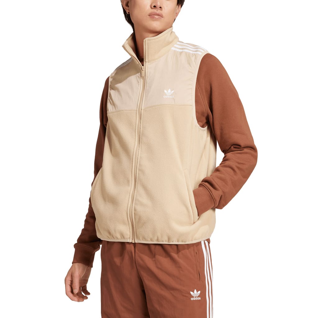 Mens adidas Originals Adicolor 3-Stripes Microfleece Vest in magic beige