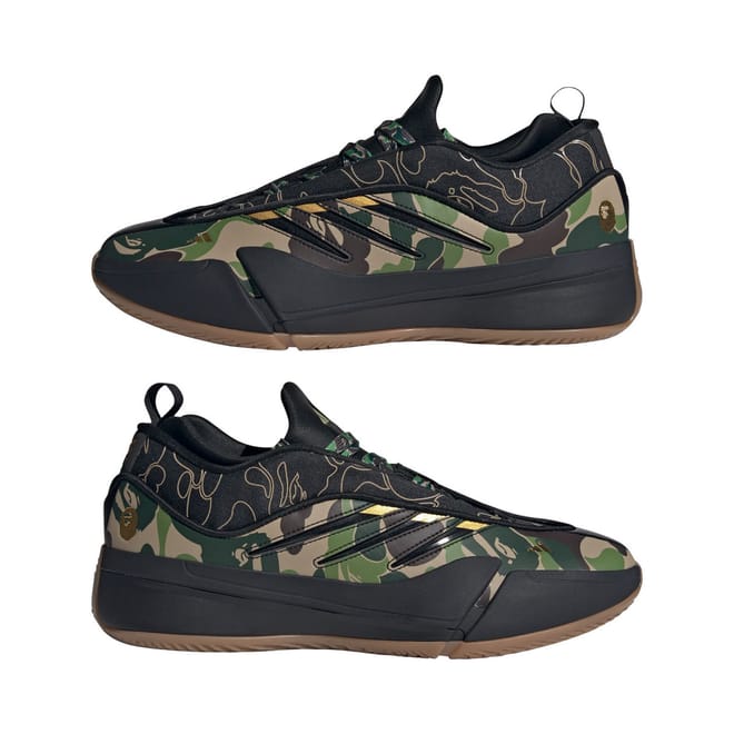 The BAPE® x Dame 9 shoes from adidas Basketball step onto the court ready for action. A Lightstrike midsole puts spring in your stride while keeping things light, cushioning impacts and powering your elevation. Signature BAPE® graphics and a Damian Lillard logo get you ready for the victory lap. Lace up and bring the energy, on and off the hardwood.