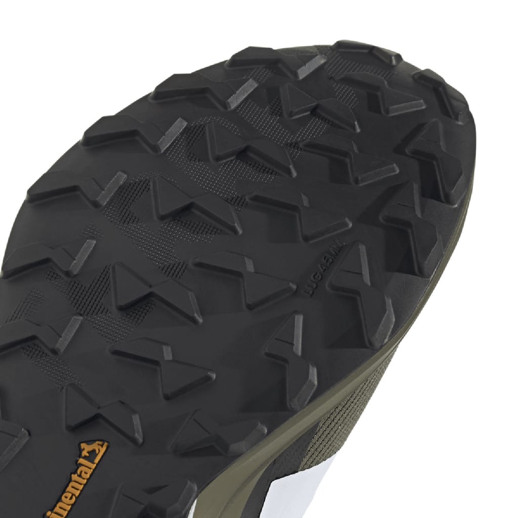 Responsive and supportive, these Terrex Agravic trail running shoes are built for logging miles and adventurous days on the trail in wet, muddy conditions. A waterproof, breathable GORE-TEX membrane seals out wet conditions to keep your feet dry, and you focused on the trail ahead. Abrasion-resistant overlays add trail-proven durability, and the gusseted tongue seals out debris. A Lightstrike 2.0 midsole provides responsive cushioning for stability and comfort on rough terrain, and the rocker shape promotes a smooth roll-off for a fluid pace. The Continental™ Rubber outsole with 4 mm lugged tread maintains secure footing across roots and rocks, wet or dry.