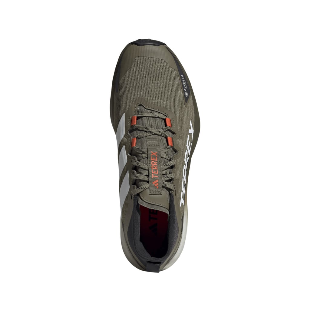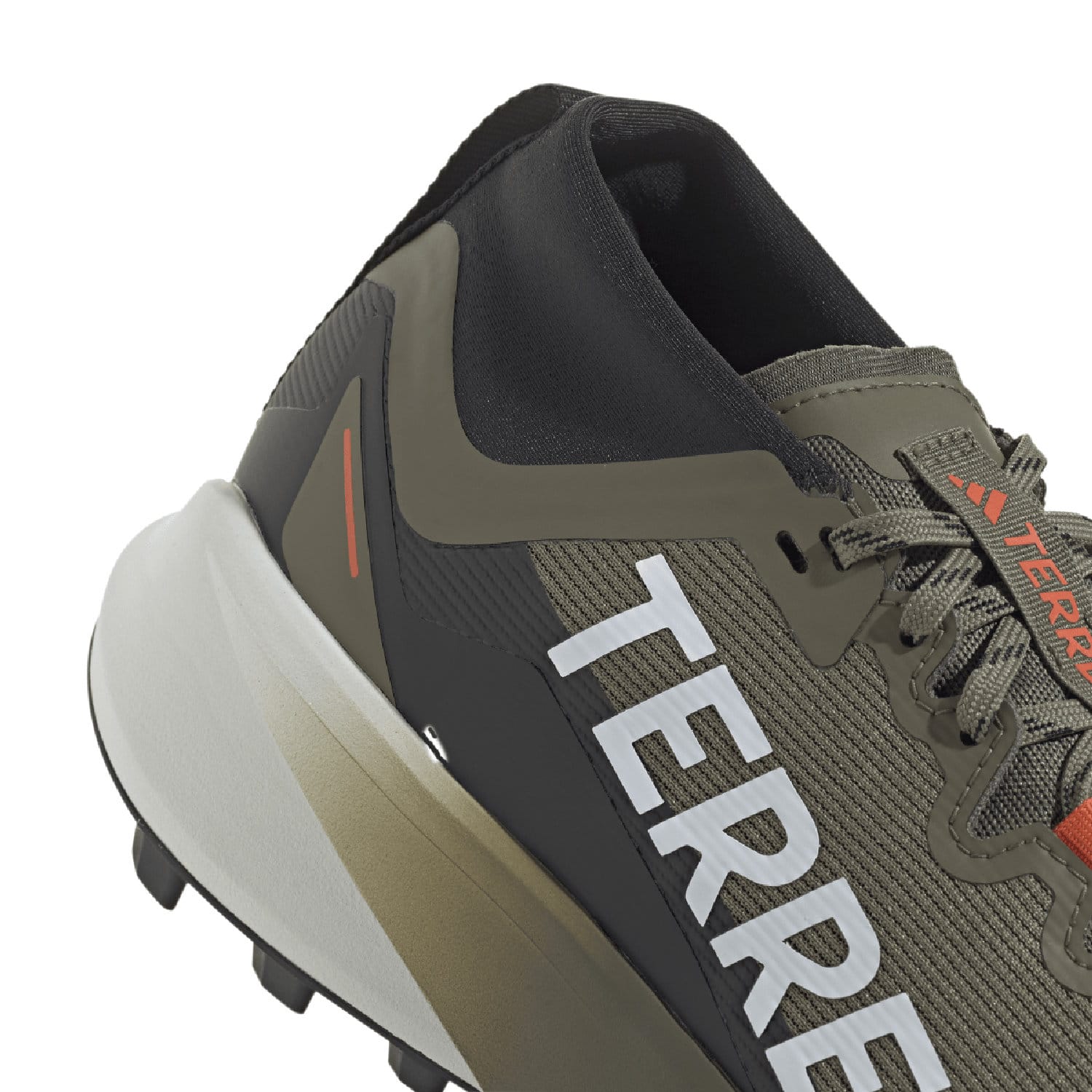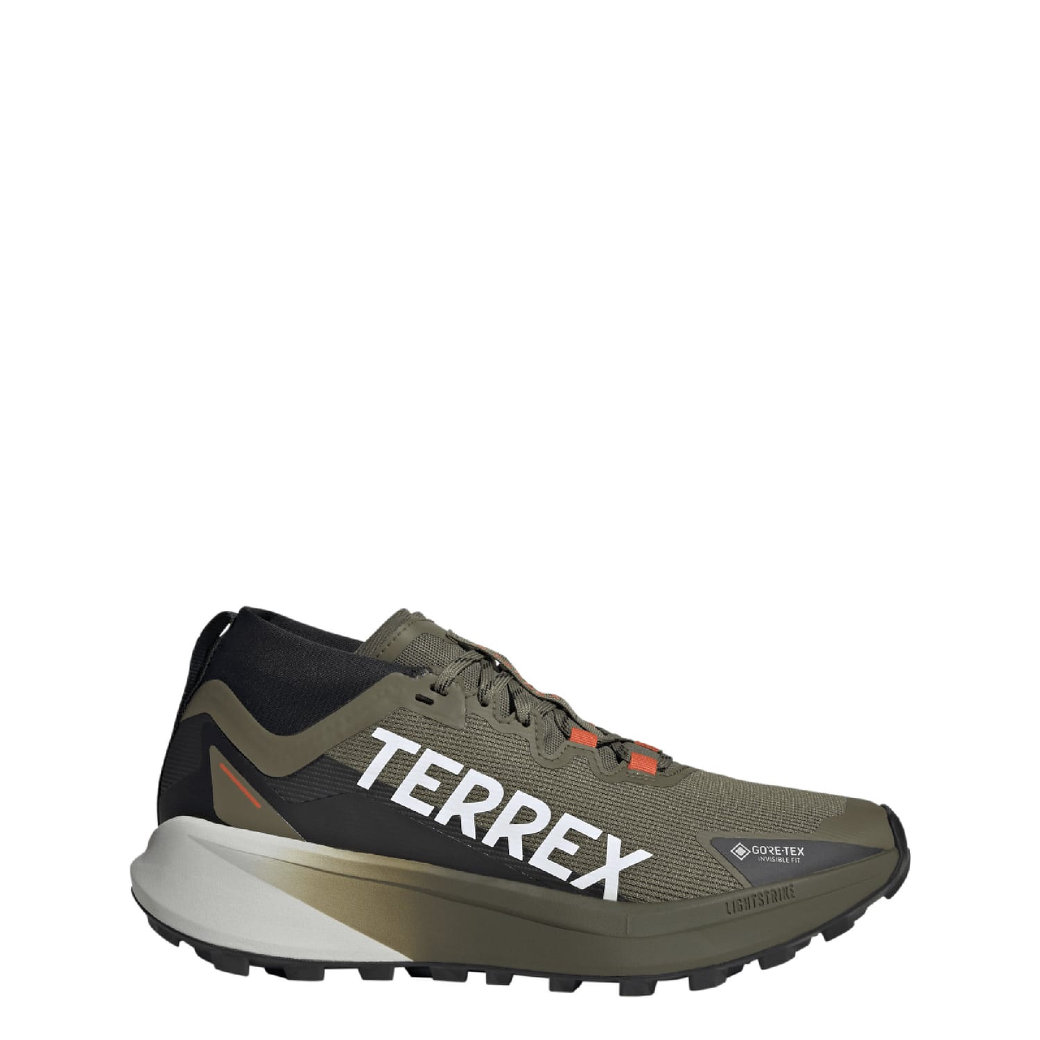 Mens adidas Terrex Agravic GTX Trail Running Shoes in olive strata / cloud white / semi impact orange