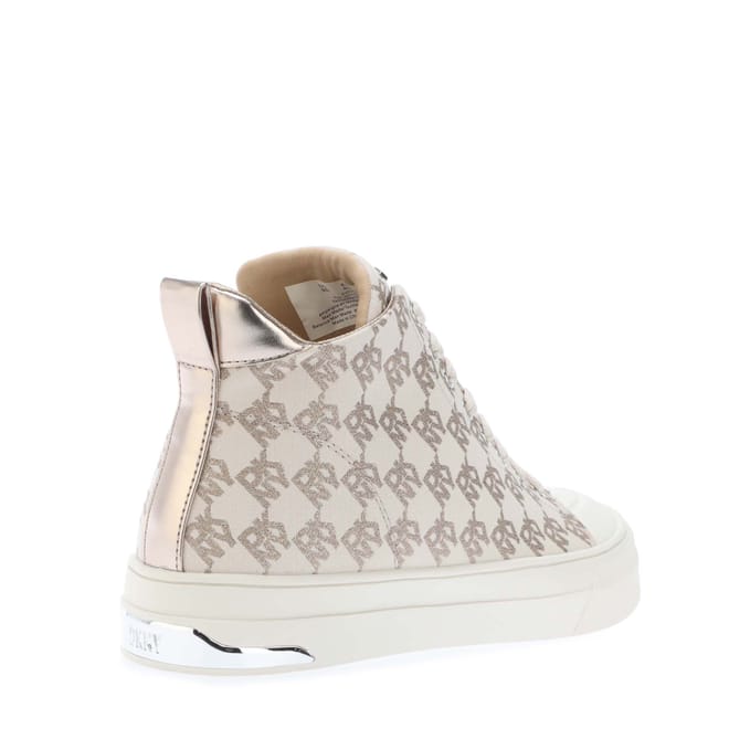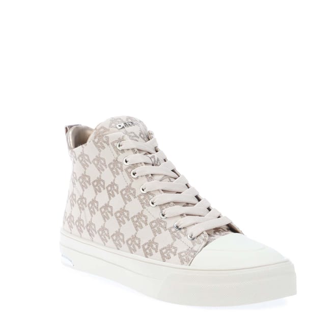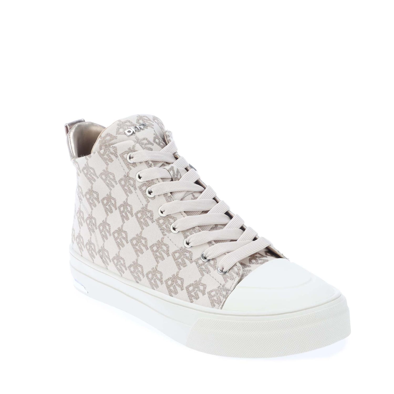 Textile upper. Lace up fastening. Side zip. High top. Metallic heel detail. Branded tongue logo. All-over logo. Durable rubber sole. -