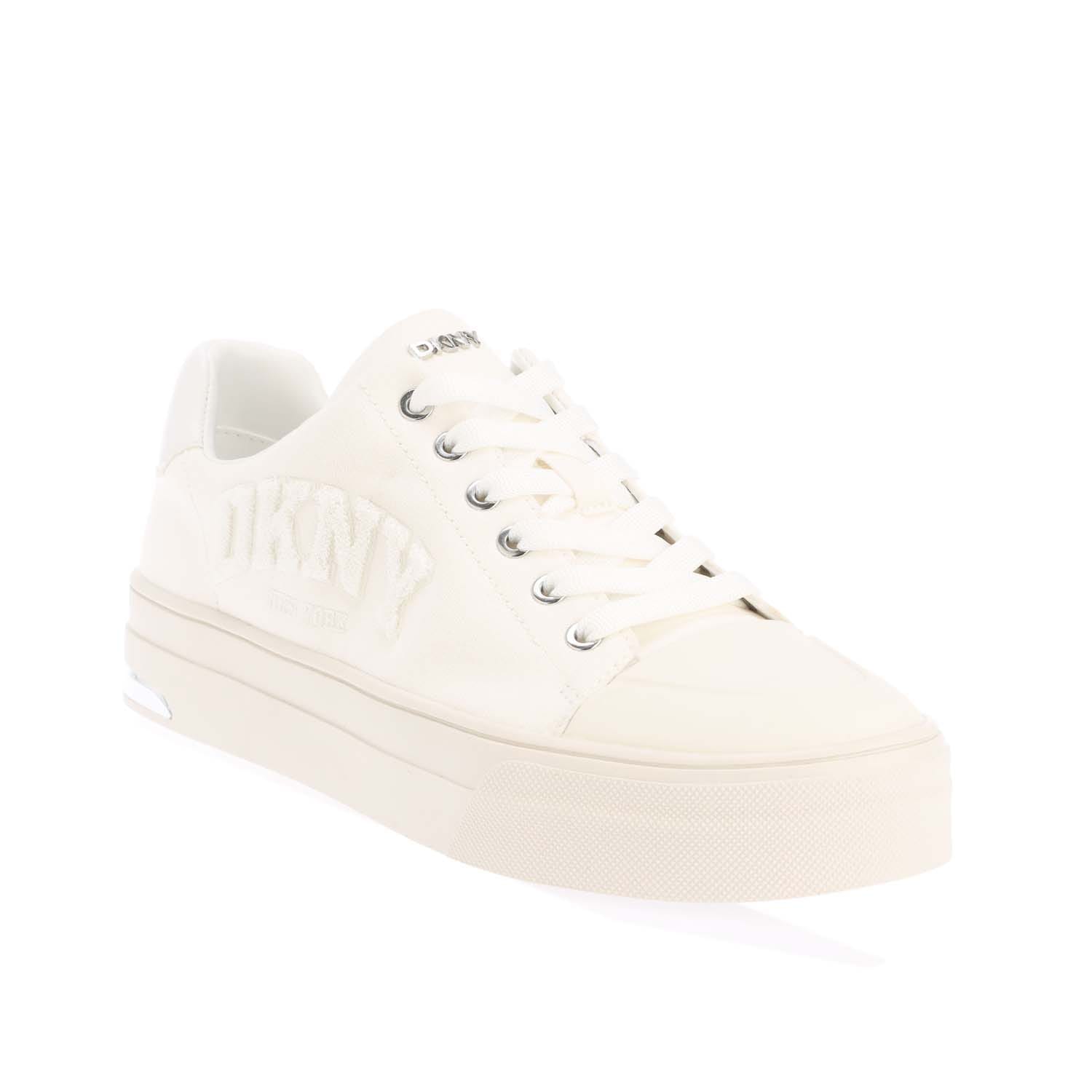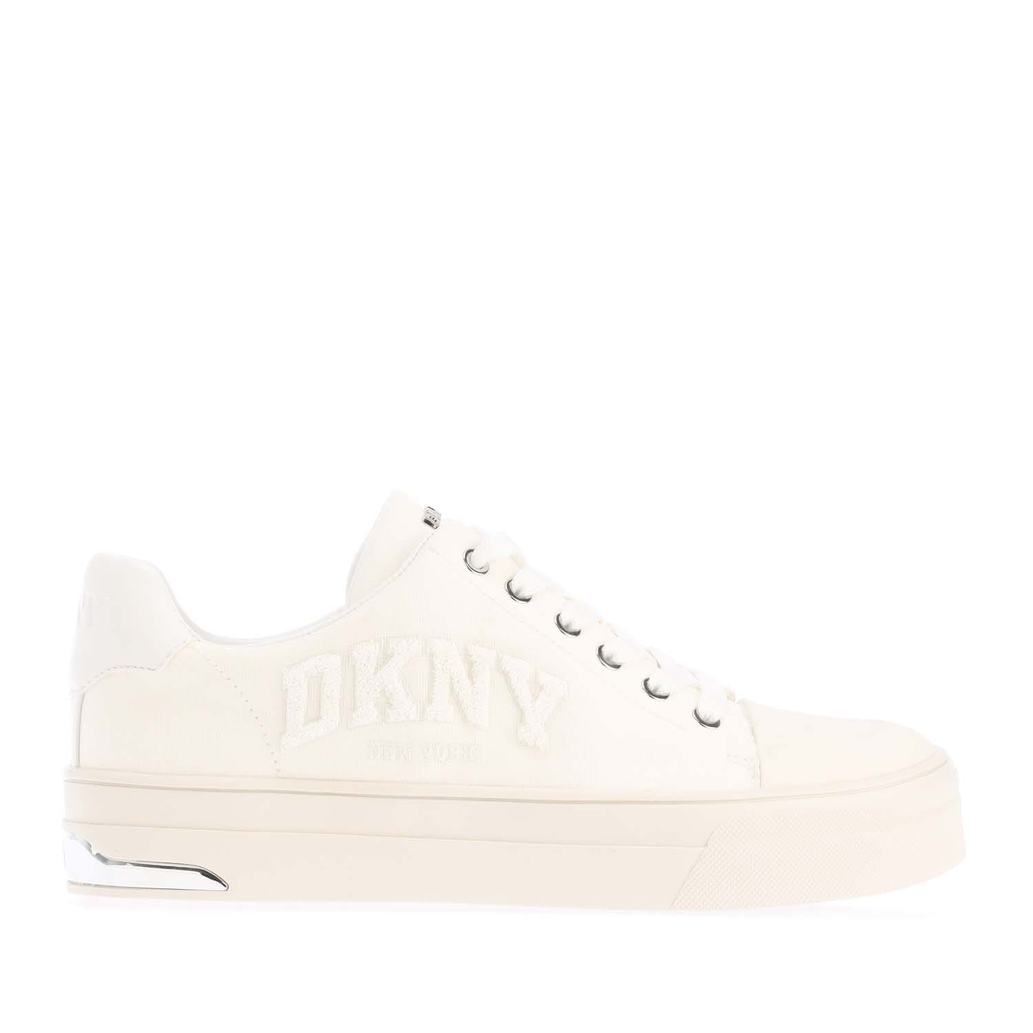 Womens DKNY York Varsity Lace Up Trainers in white.