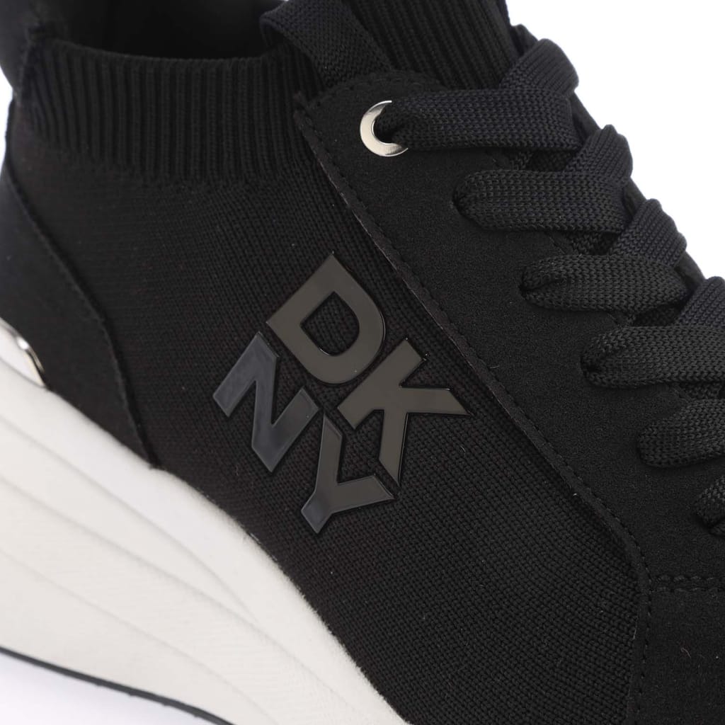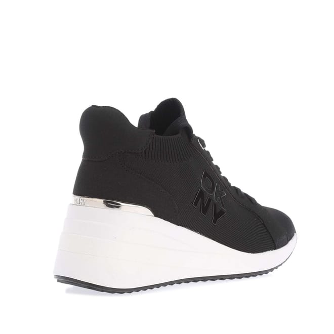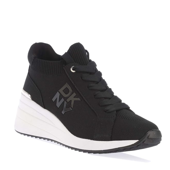 Womens DKNY Kasia Lace Up Wedge Trainers in black.