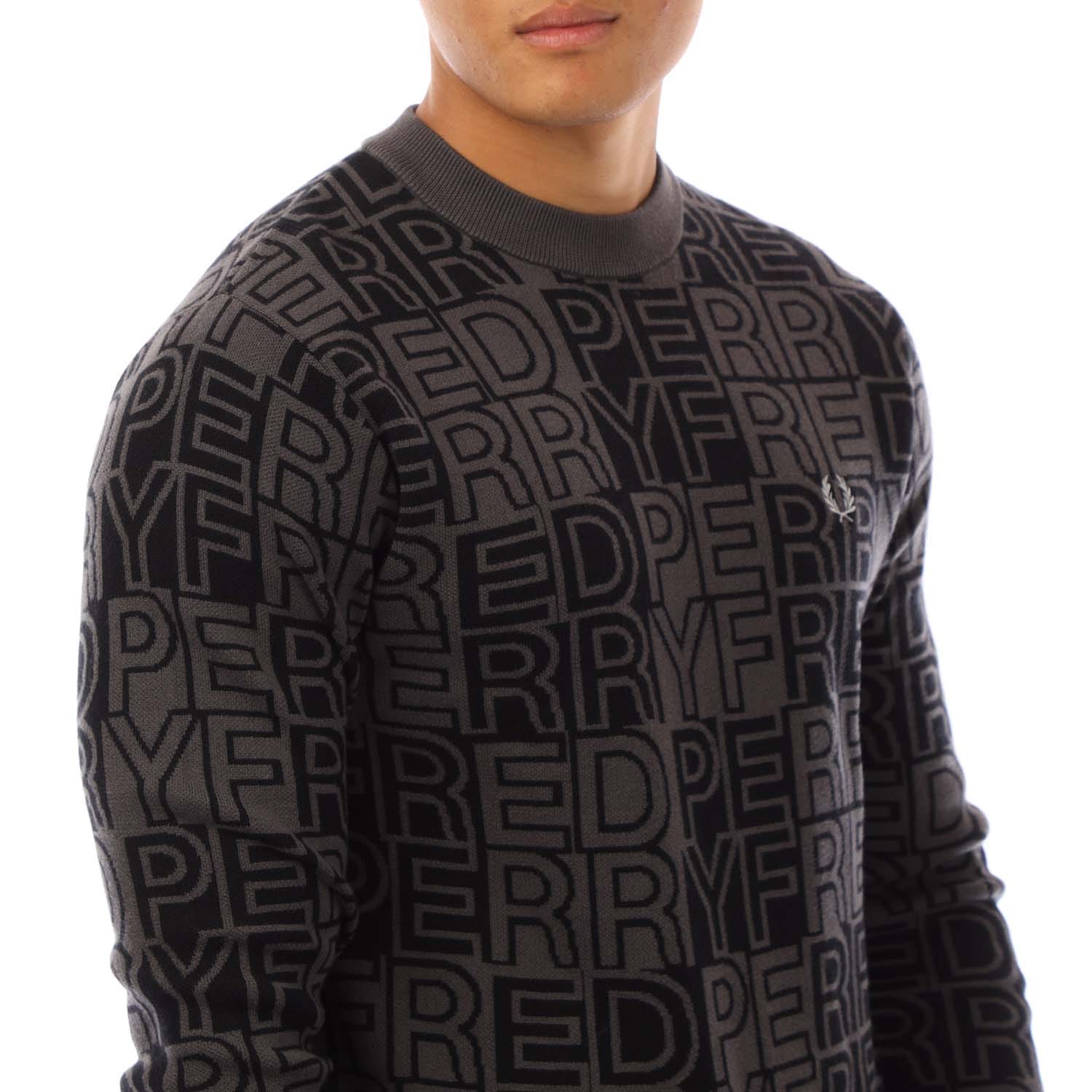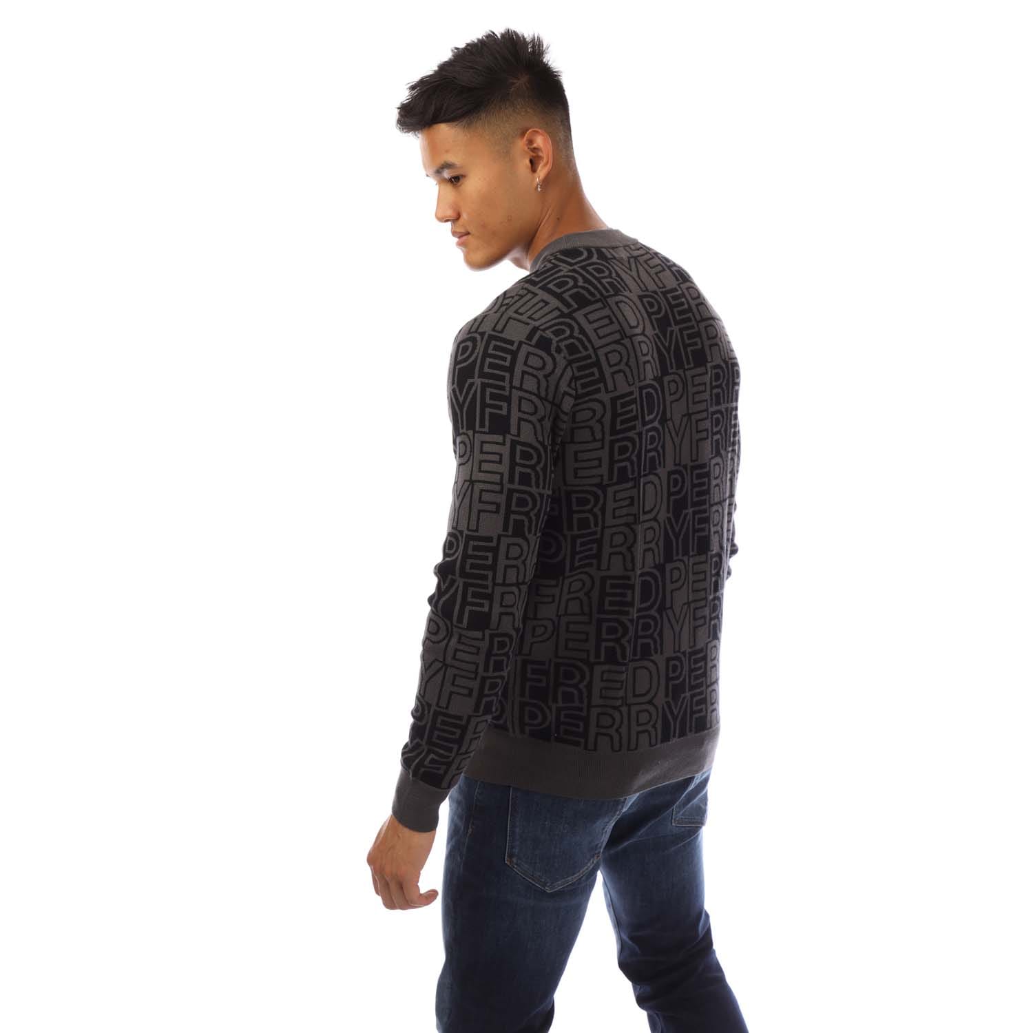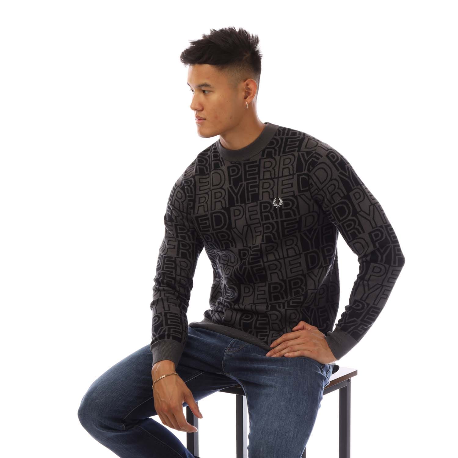 Mens Fred Perry Block Graphic Jumper in gunmetal.