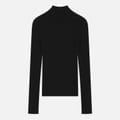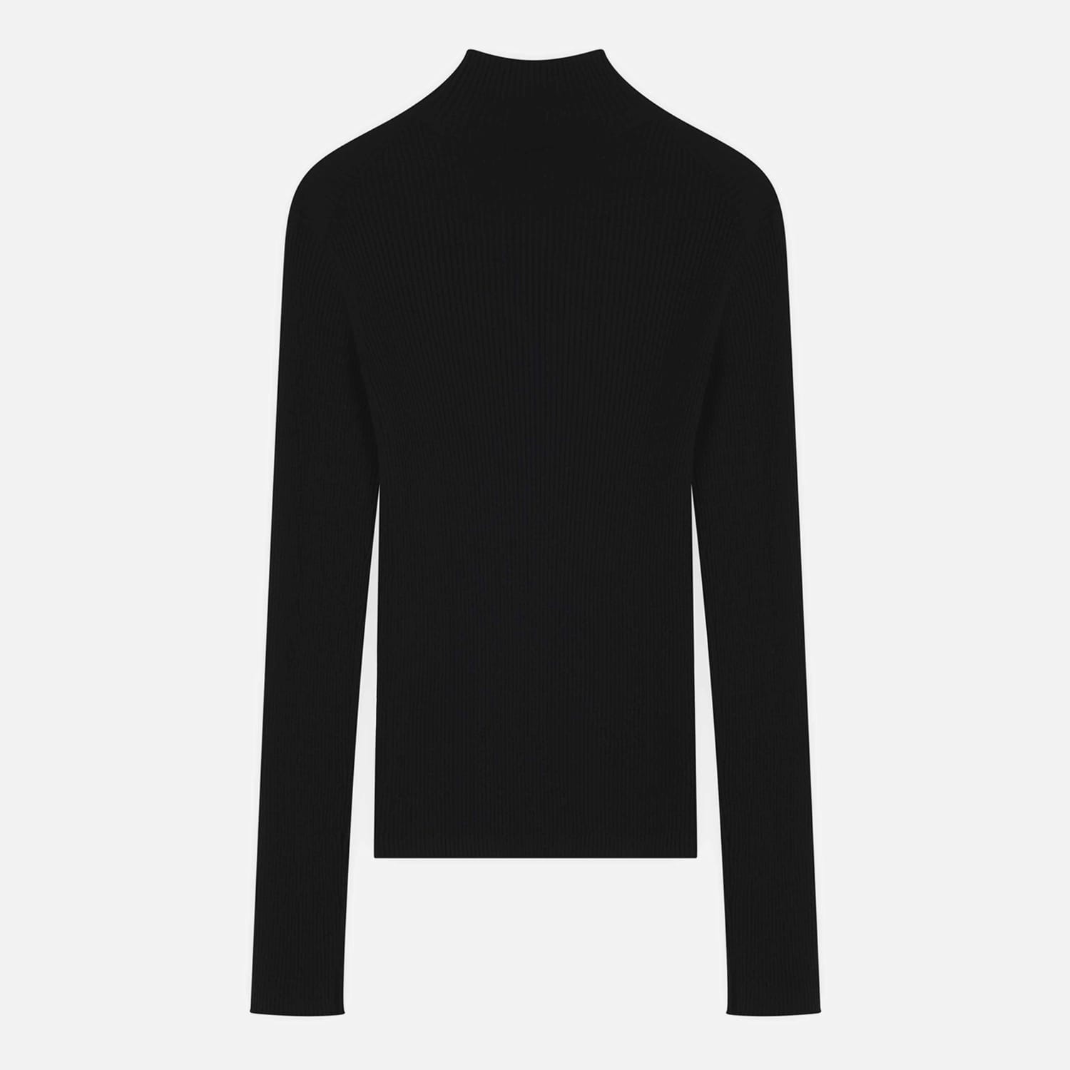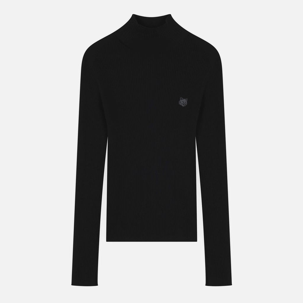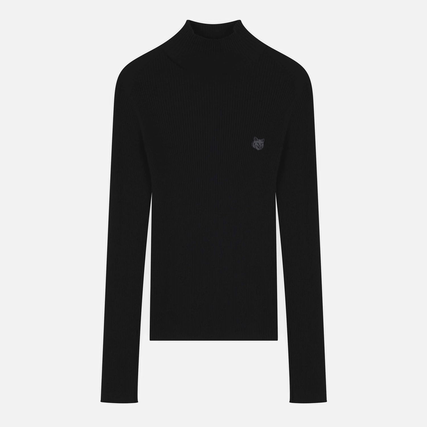 This black, ribbed turtleneck features a tone-on-tone embroidered fox head patch on the chest. It is made from a blend of cotton and wool. -
