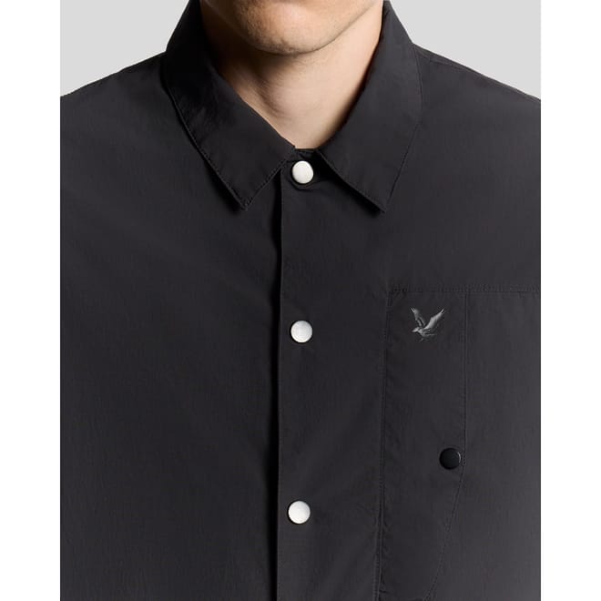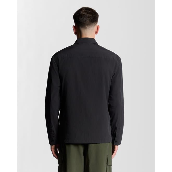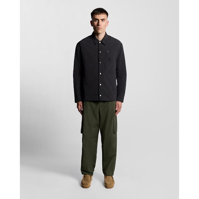 "A lightweight overshirt crafted from crinkle nylon for texture and durability. This versatile piece features a relaxed fit, chest pockets for practical style, and a button-front fastening. Ideal for layering or wearing on its own as a modern, functional essential. - Durable crinkle nylon fabric - Practical chest pockets - Relaxed fit for easy layering - Button-front fastening" -