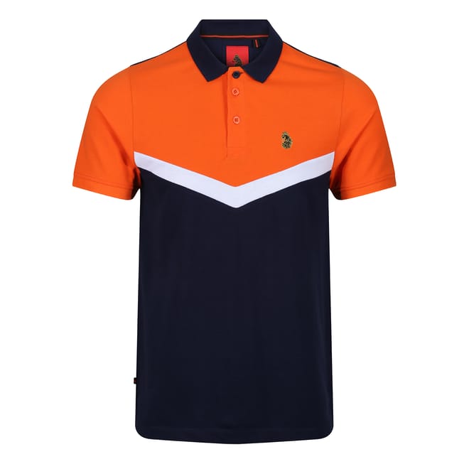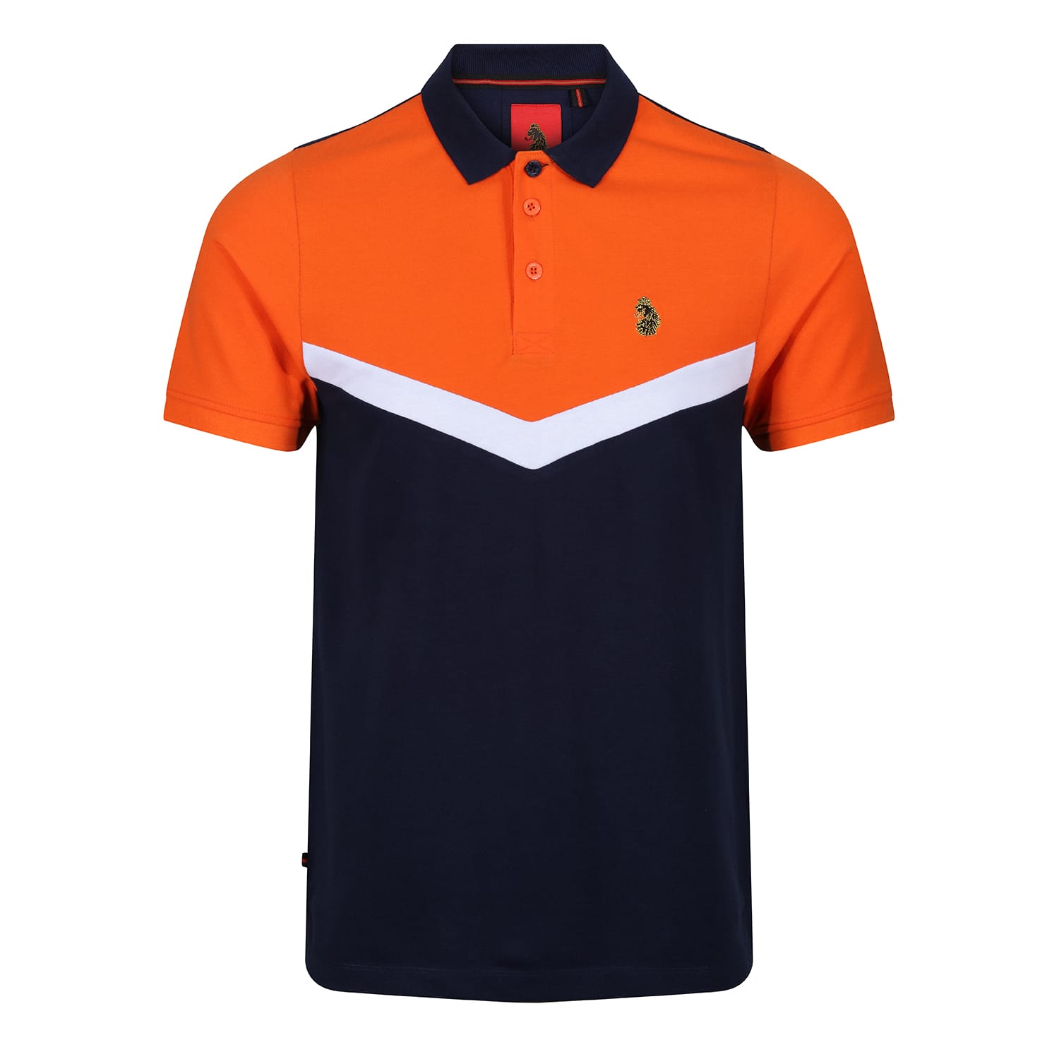 Mens Luke 1977 Cala Mayor Chevron Detail Polo Shirt in navy-orange.