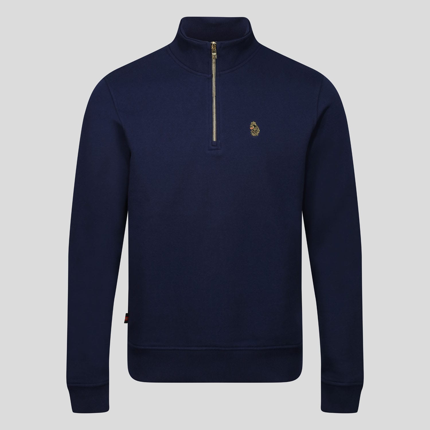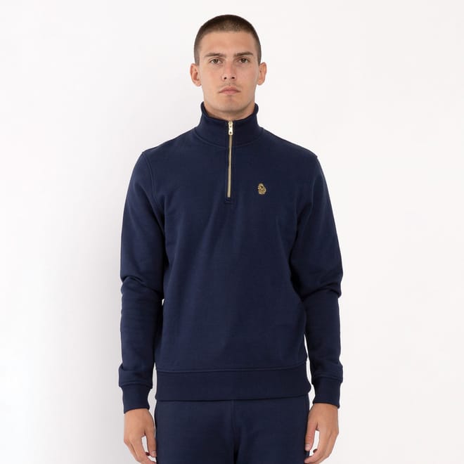 "This funnel neck sweat from LUKE is a comfy but stylish addition to your casual wardrobe. Crafted from pure cotton loop back, it is detailed with a gold quarter zip and fitted with soft rib trims throughout. The look is then signed off with the brands iconic lion head embroidery on the left chest.