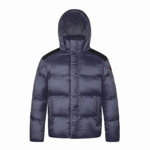 Museum Hooded Snap Button Solid Patterned Puffer Jacket with Logo Badge