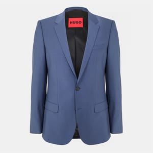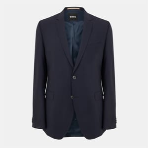 Boss Solid Patterned Notch Collared Suit Jacket with Flap and Chest Pocket