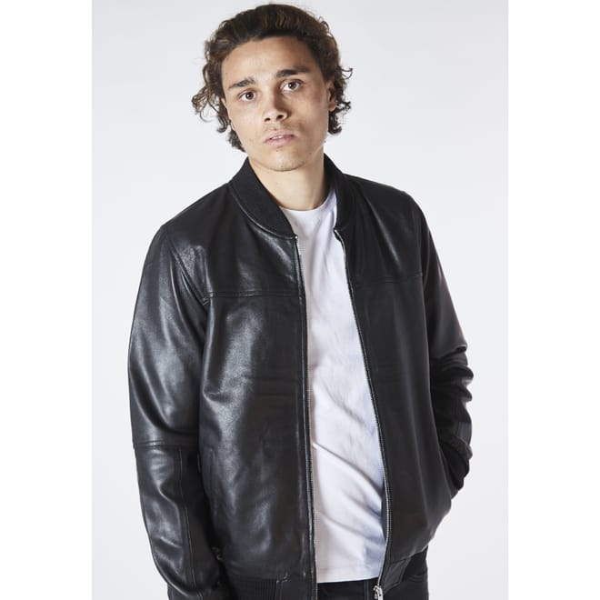 Mens Bolongaro Trevor Mikey Leather Bomber Jacket in black.