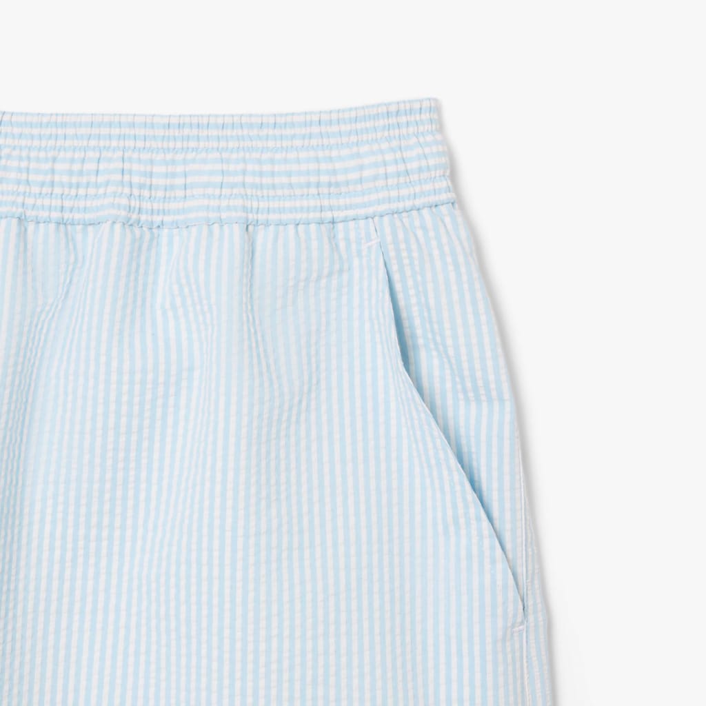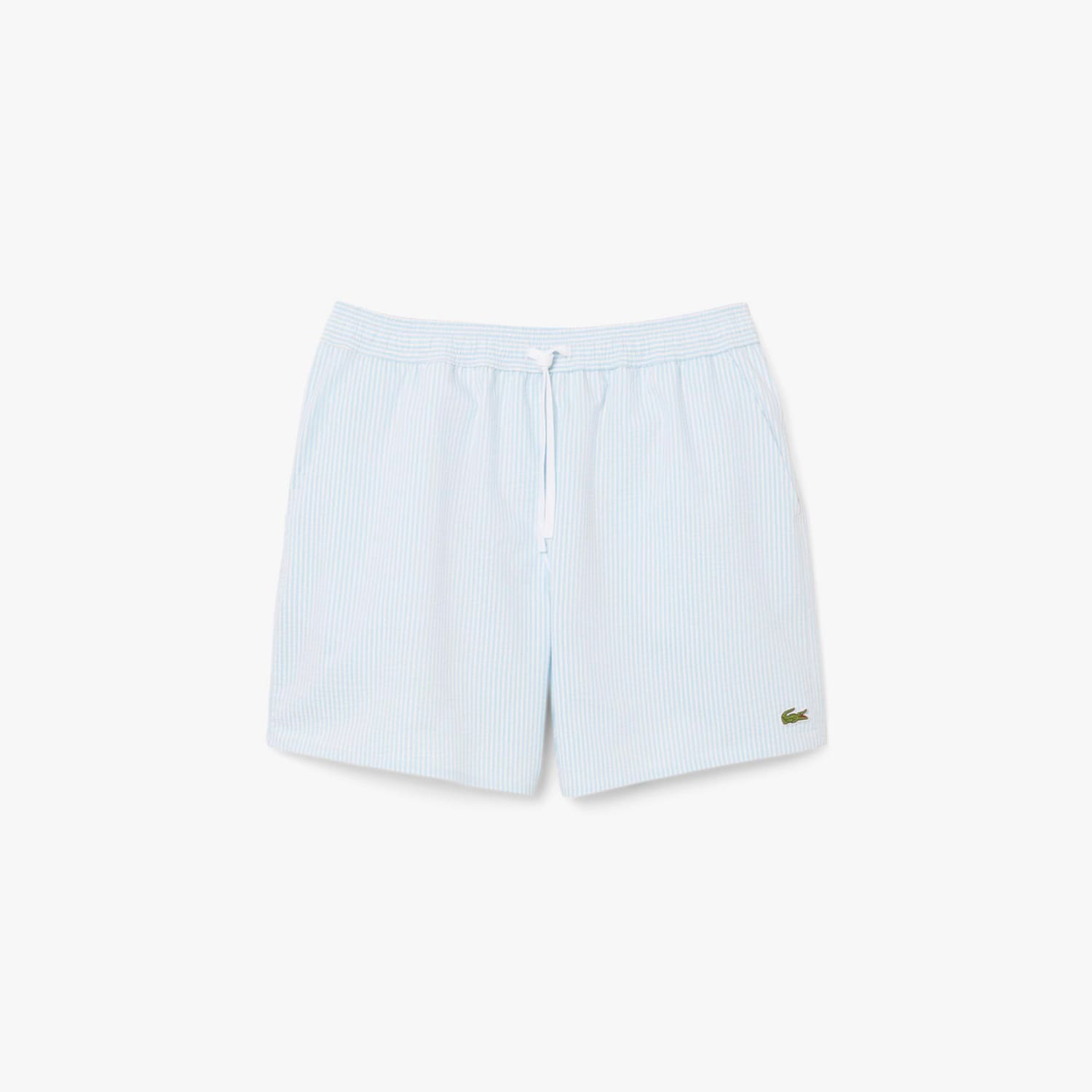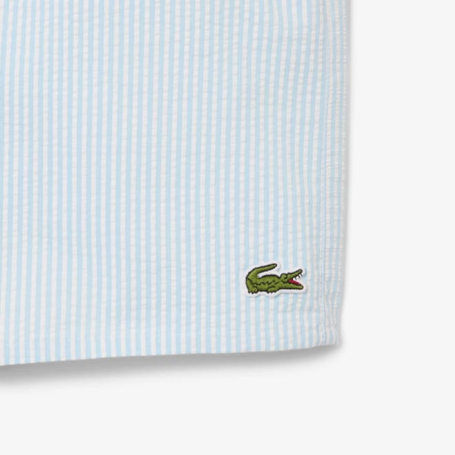 These mid-length swim trunks are a lesson in Lacoste elegance and expertise. Made from a soft, textured seersucker fabric with integrated mesh liner for freedom of movement and a quick-dry finish, with narrow stripes and an embroidered signature crocodile for a casual chic feel. Sold with a swimming bag.