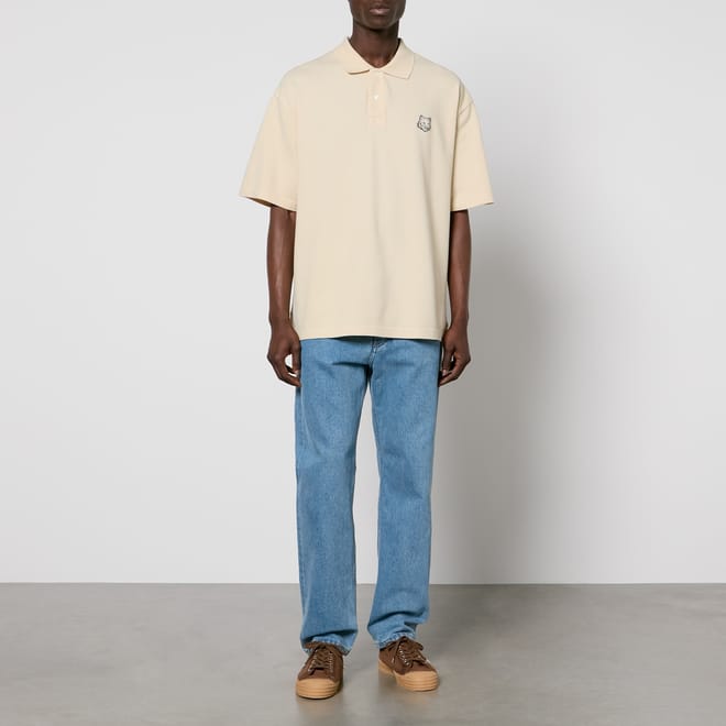 Polo collar with button placket. Short sleeves. Grey Bold Fox Head patch embroidered on the chest. Oversized cut. -
