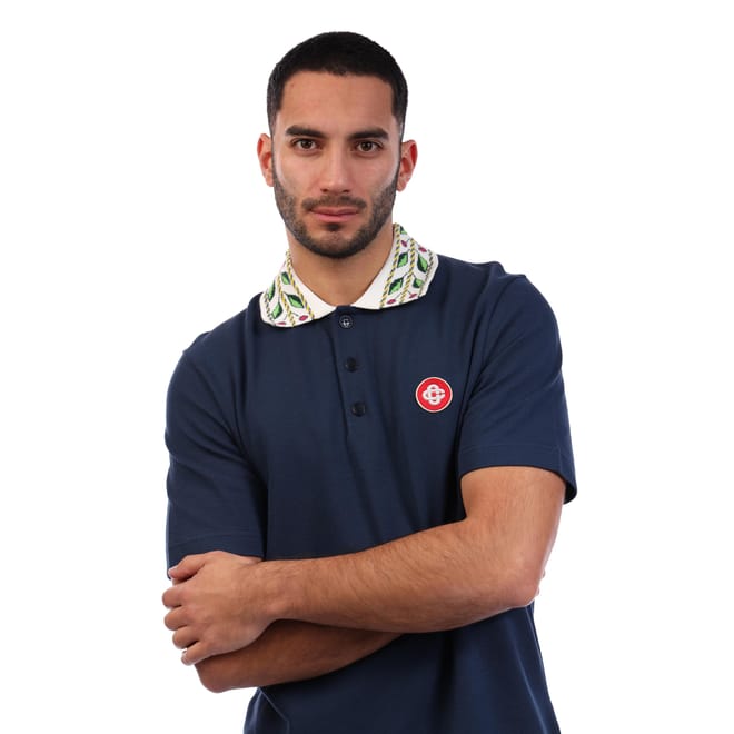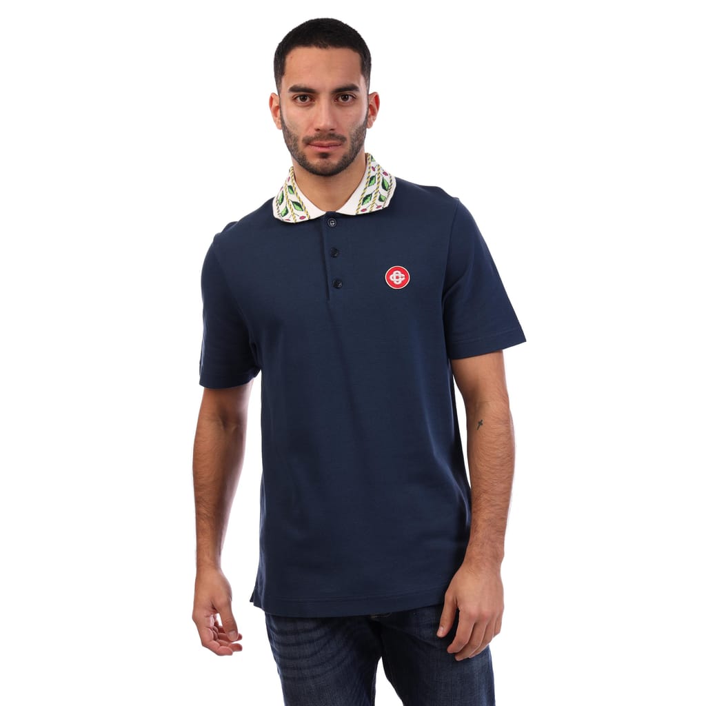 Mens Casablanca Classic Laurel Pique Polo Shirt in navy.