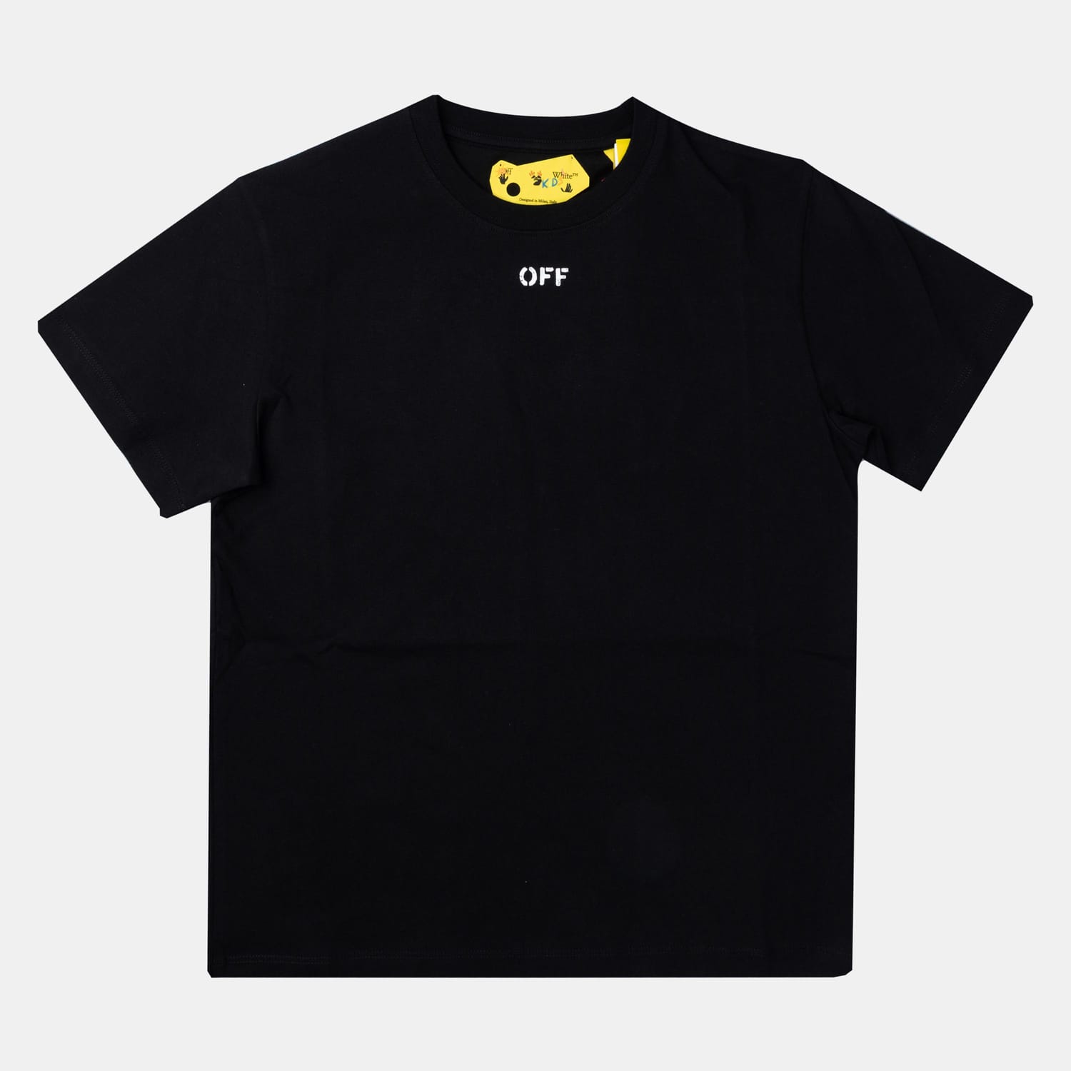 Juniors Off White Off Stamp Plain T- Shirt in black-white.