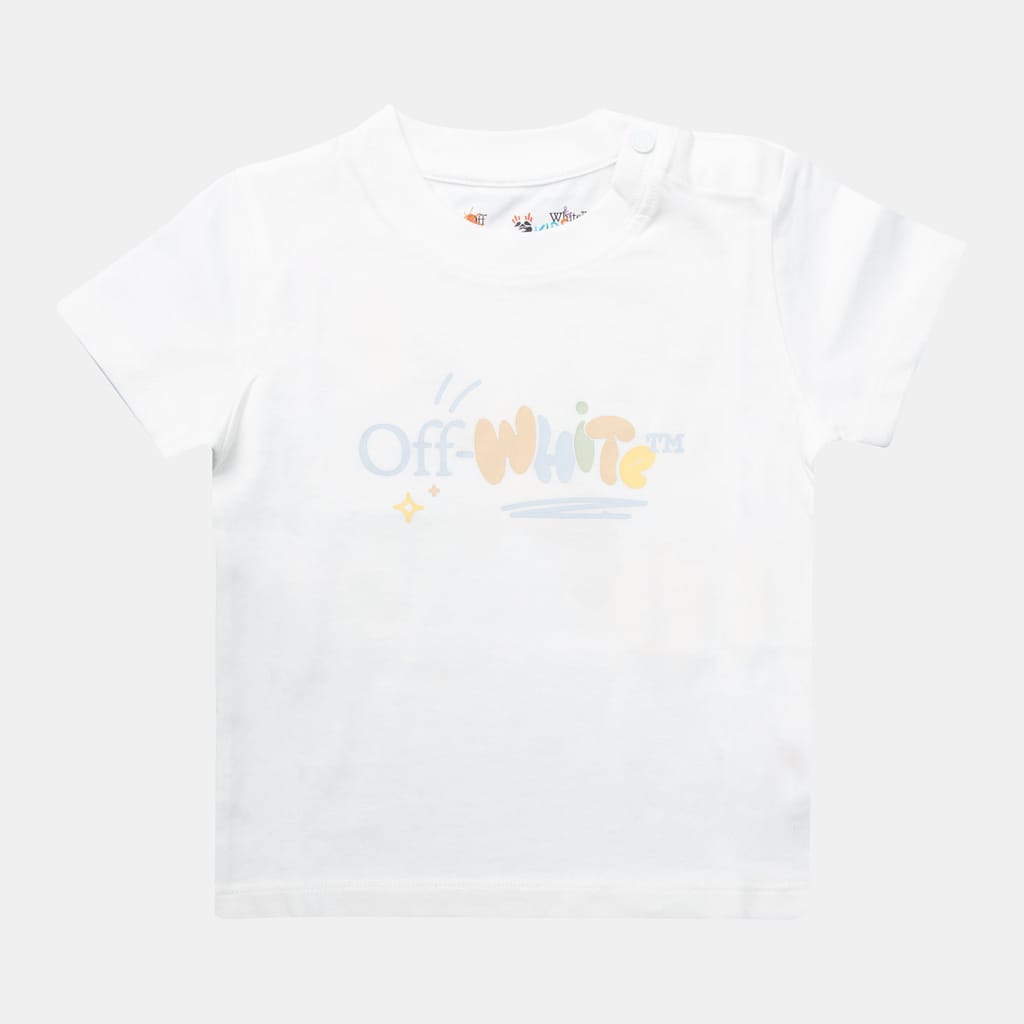 - Vibrant, multi-coloured Off White logo graphic printed on the chest.