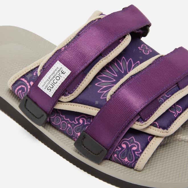 Padded nylon upper. Two adjustable nylon straps with Velcro fastenings. Suicoke's signature contoured, antibacterial EVA footbed. Rubber sole. -