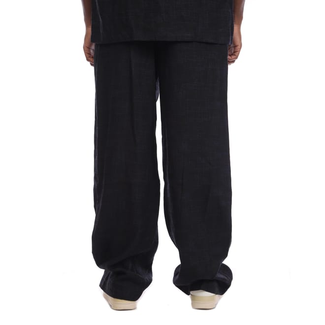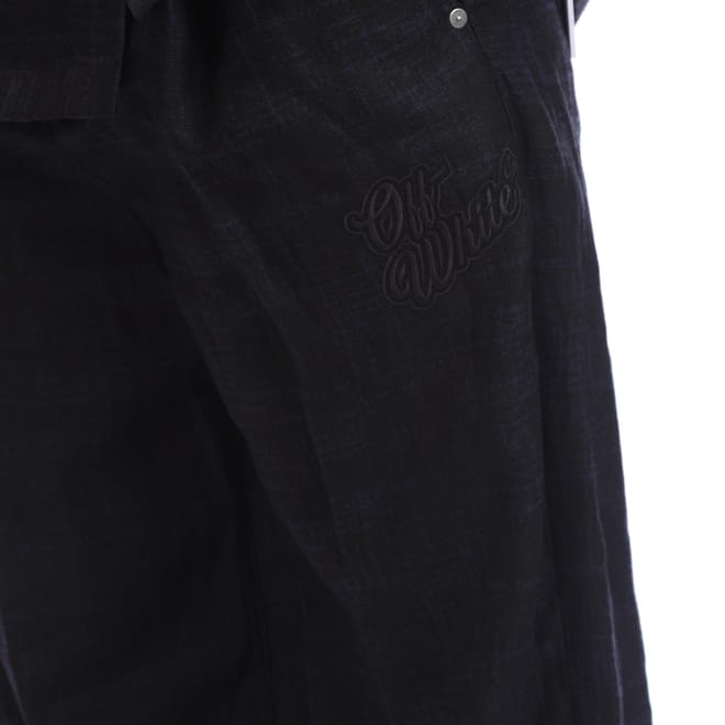 Mens Off White 90s Logo Linen Baggy Tapered Pants in black.