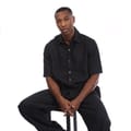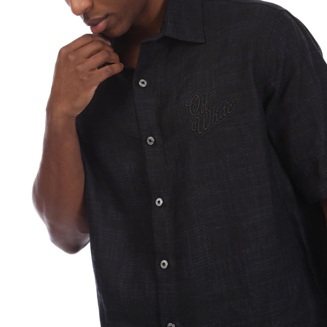 Mens Off White 90s Logo Linen Bowling Shirt in black.