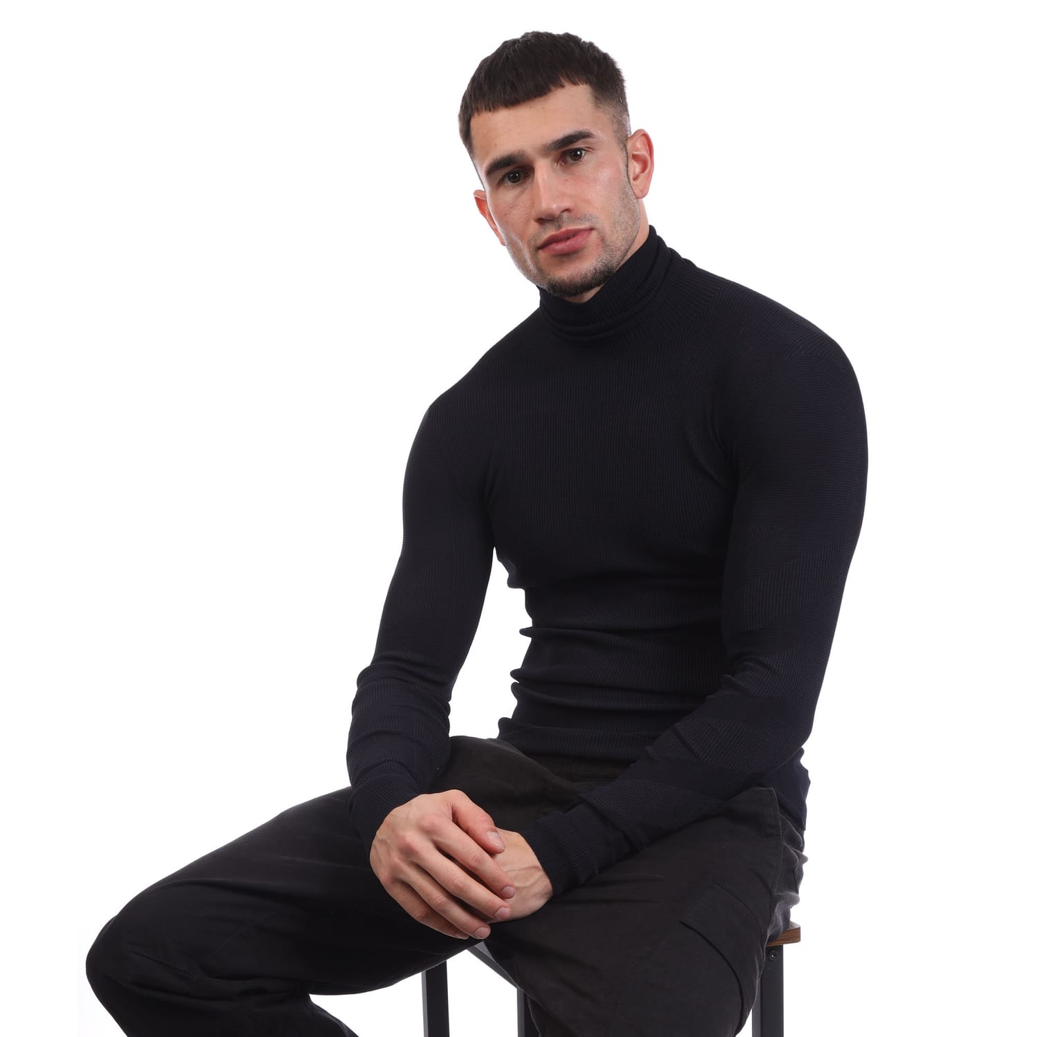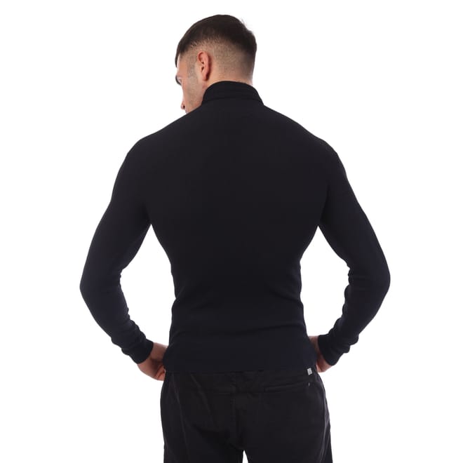 Mens Off White Diagonals Knit Turtleneck Sweatshirt in blue.