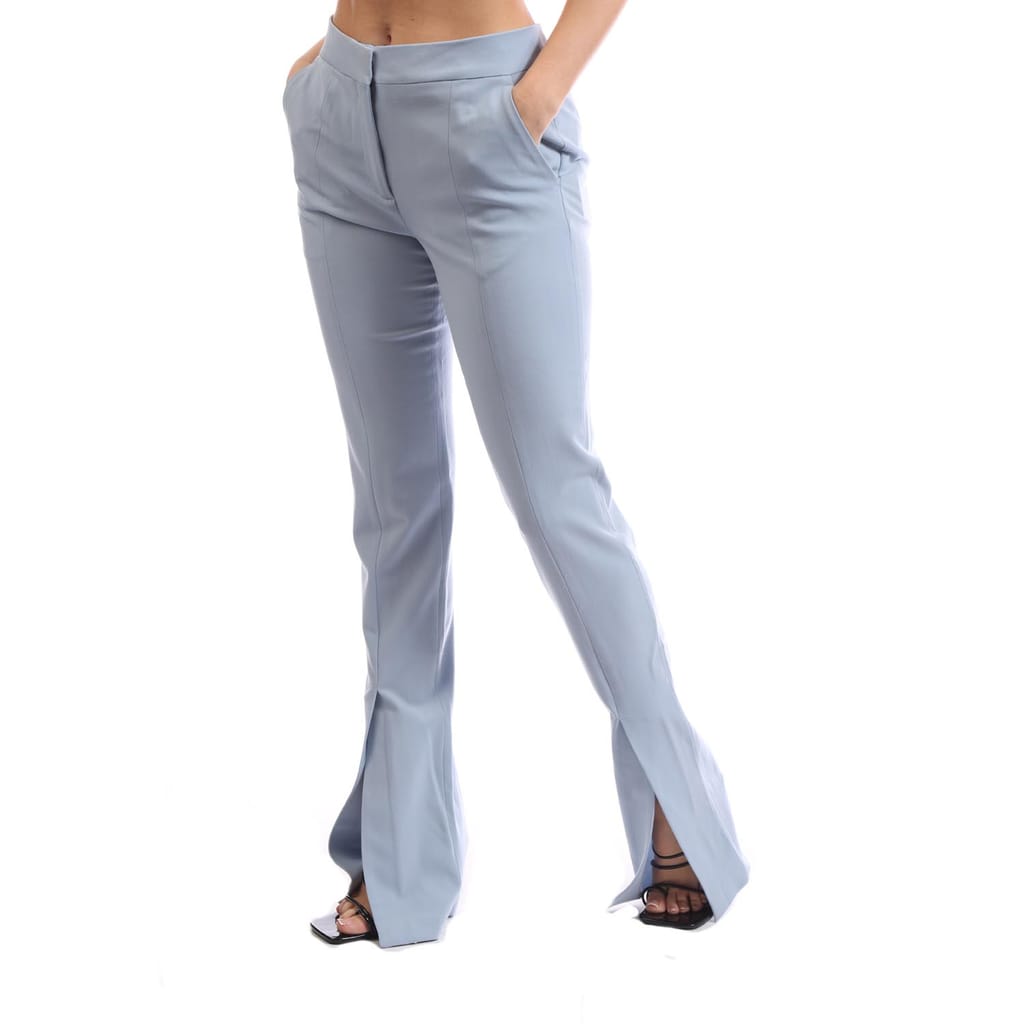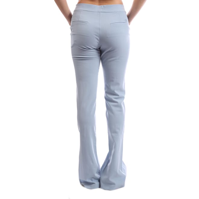 Womens Off White Wool Blend Basic Slim Pants in light blue.
