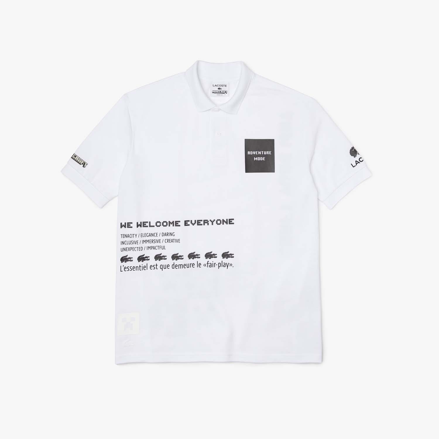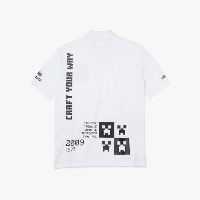 Men's Lacoste L!VE x Minecraft Loose Fit Organic Cotton Polo Shirt organic cotton piqué Ribbed polo shirt collar with two square buttons with Minecraft branding Loose fit Ribbed finishes at sleeve ends Prints on chest, sleeves and back -