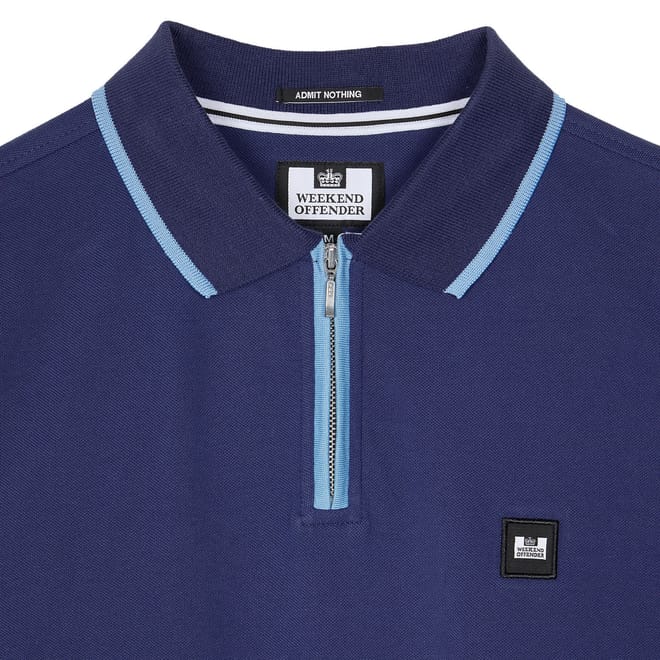 Mens Weekend Offender Shore Zipped Polo Shirt in navy.