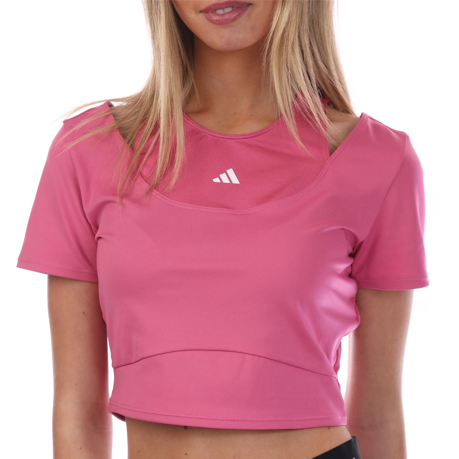 Womens adidas HIIT Aeroready Crop Training T- Shirt in pink.