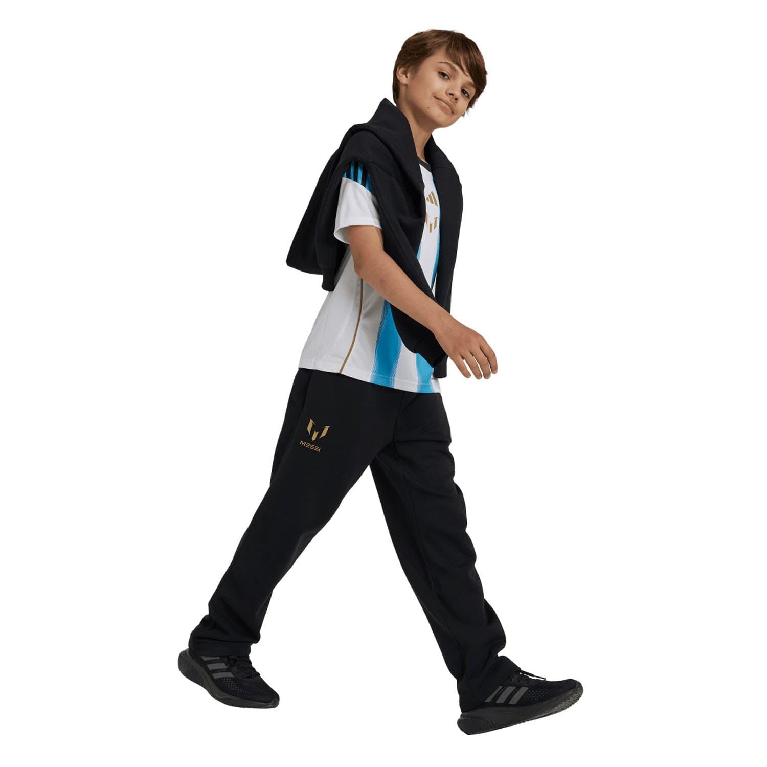 Junior adidas Messi Fleece Tracksuit Bottoms in black.