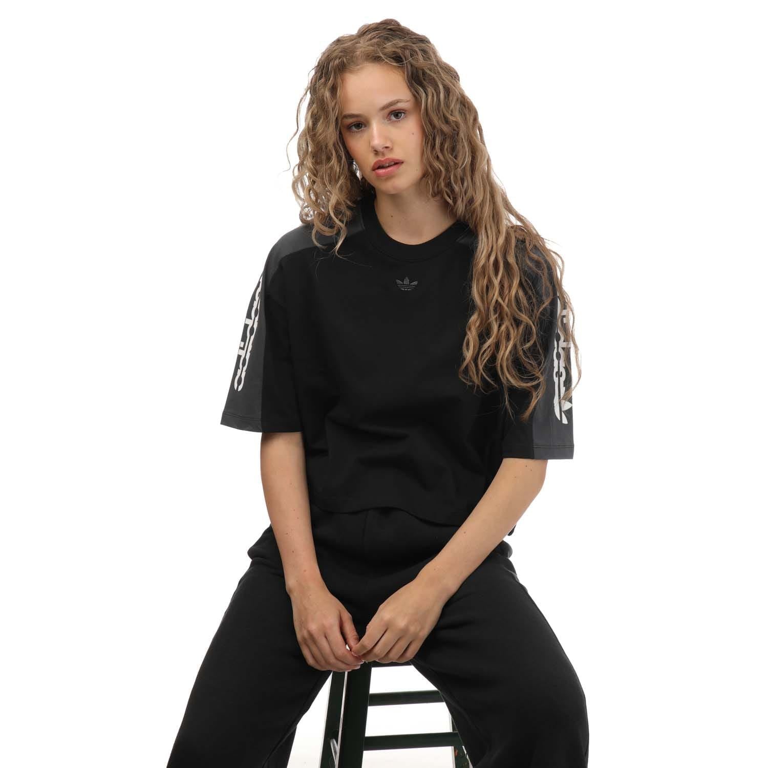 Womens adidas Originals Blocked Graphic Crop T-Shirt in black.