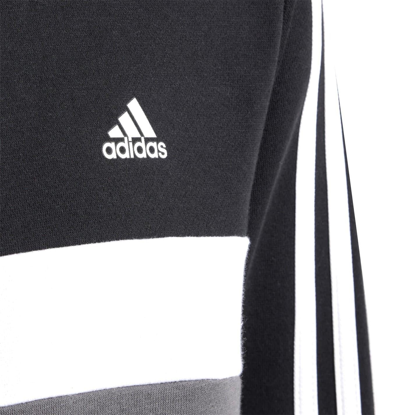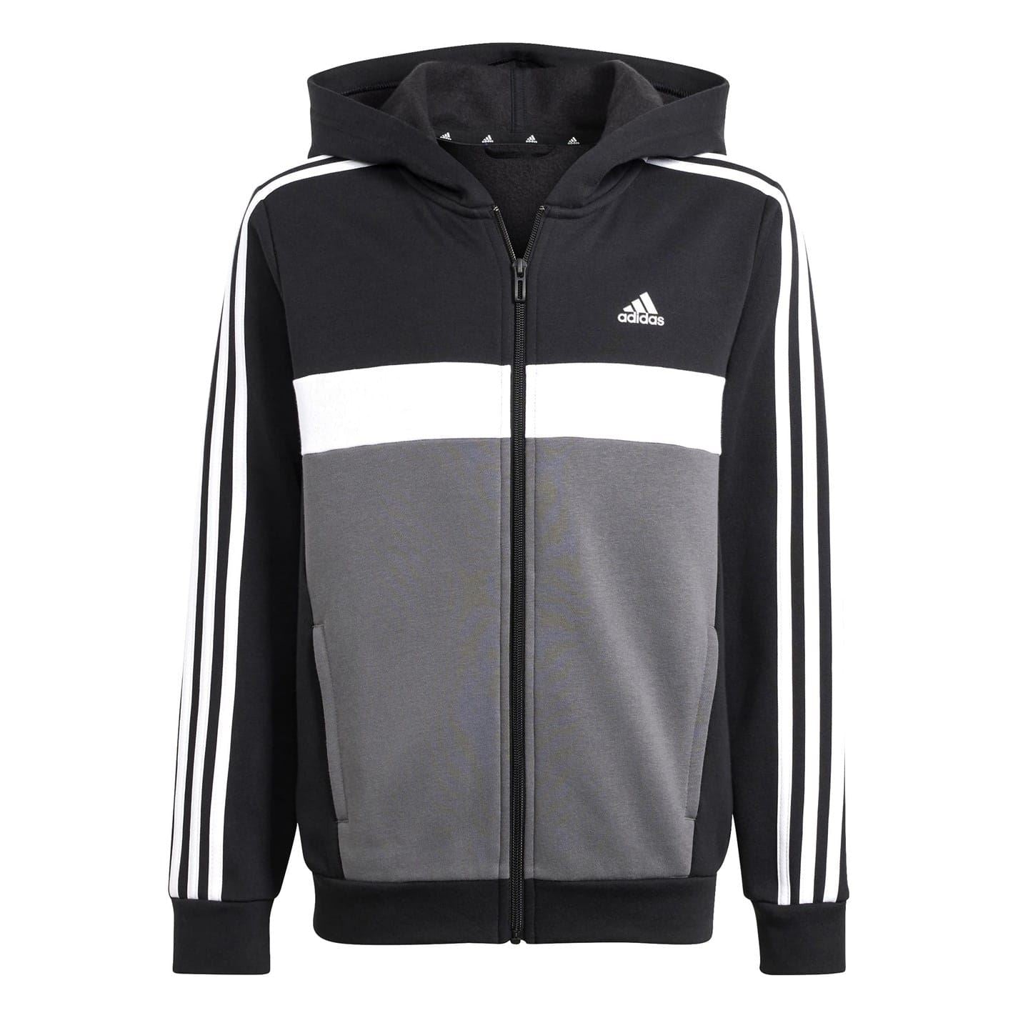 This juniors' adidas track suit was designed to keep you cosy and focused on what matters — the present moment. Done up in ultrasoft fleece, it's an outfit primed for all-day comfort. The slim-fitting pants offer a streamlined look and the full zip promises versatile layering. Just throw on the hood, zone out and get going on your goals. A track suit that combines comfort with everyday style. Tiberio 3-Stripes Colorblock Fleece Track Suit Kids