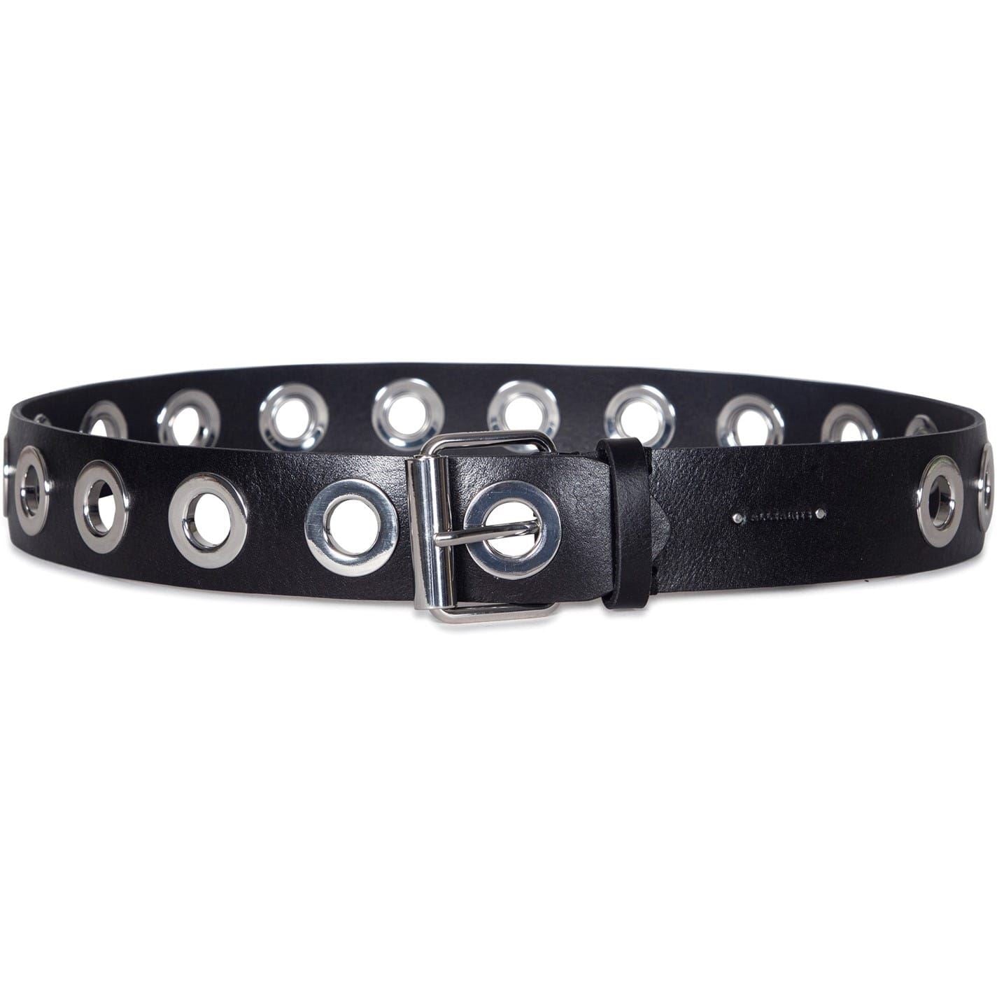 This AllSaints leather belt is a casual accessory featuring a pin buckle and adjustable length for a perfect fit. The design is enhanced with eyelet and metal eyelet embellishments, adding a distinctive touch to its style. Ideal for those seeking a blend of functionality and fashion in their everyday wear.