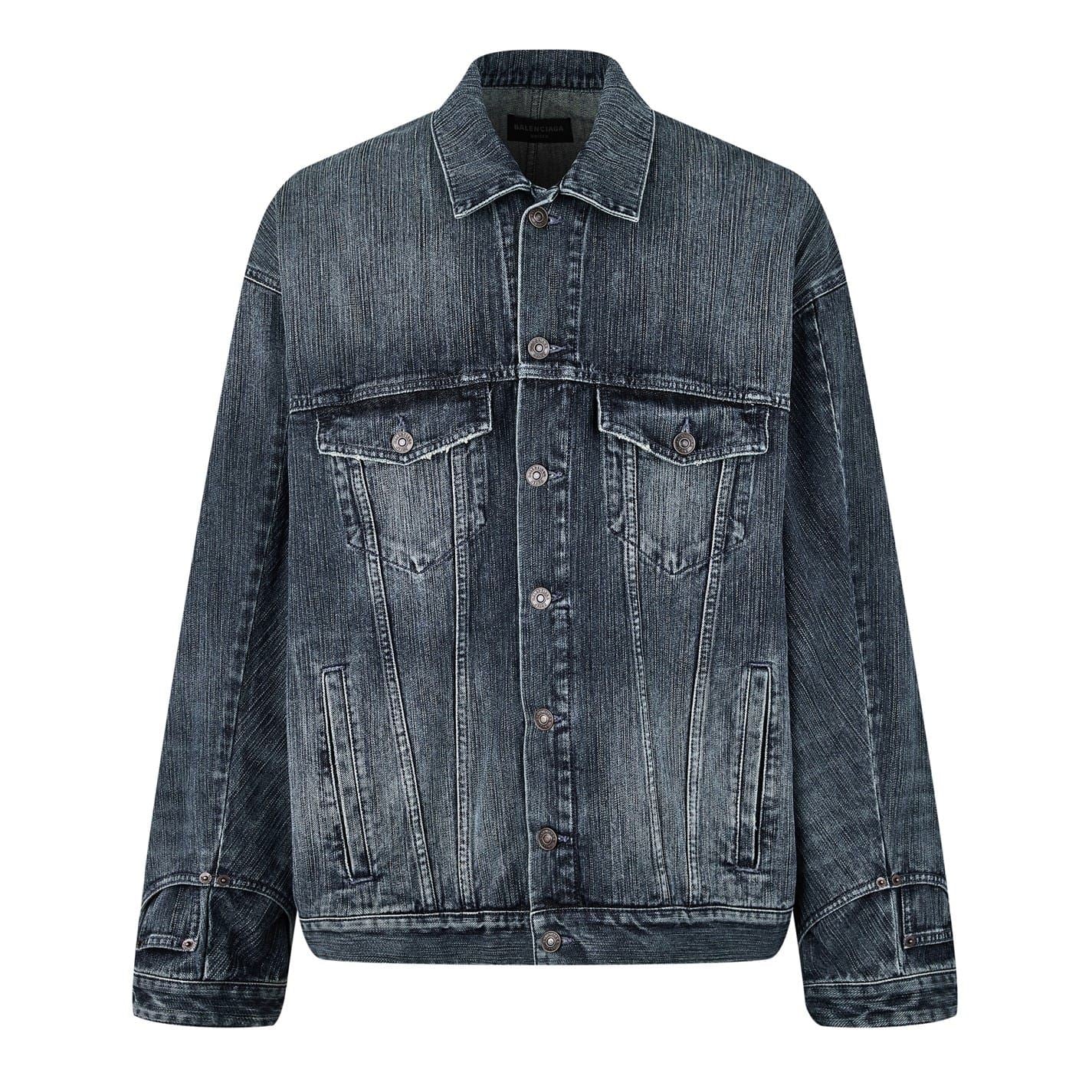 Balenciaga's Men's Blazer features a striking shape with sharp shoulders and clean lines. The tailored design creates a well-defined shape that represents the house's modern approach to designer dressing.