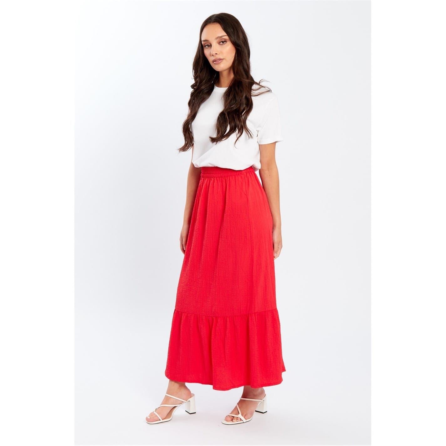 Discover the Be You midi skirt, a perfect blend of style and comfort. This tiered skirt features a textured pattern and a relaxed fit, making it an ideal choice for casual collections. The elasticated waistband ensures ease of wear, while the ruffle embellishments add a touch of flair to your ensemble.