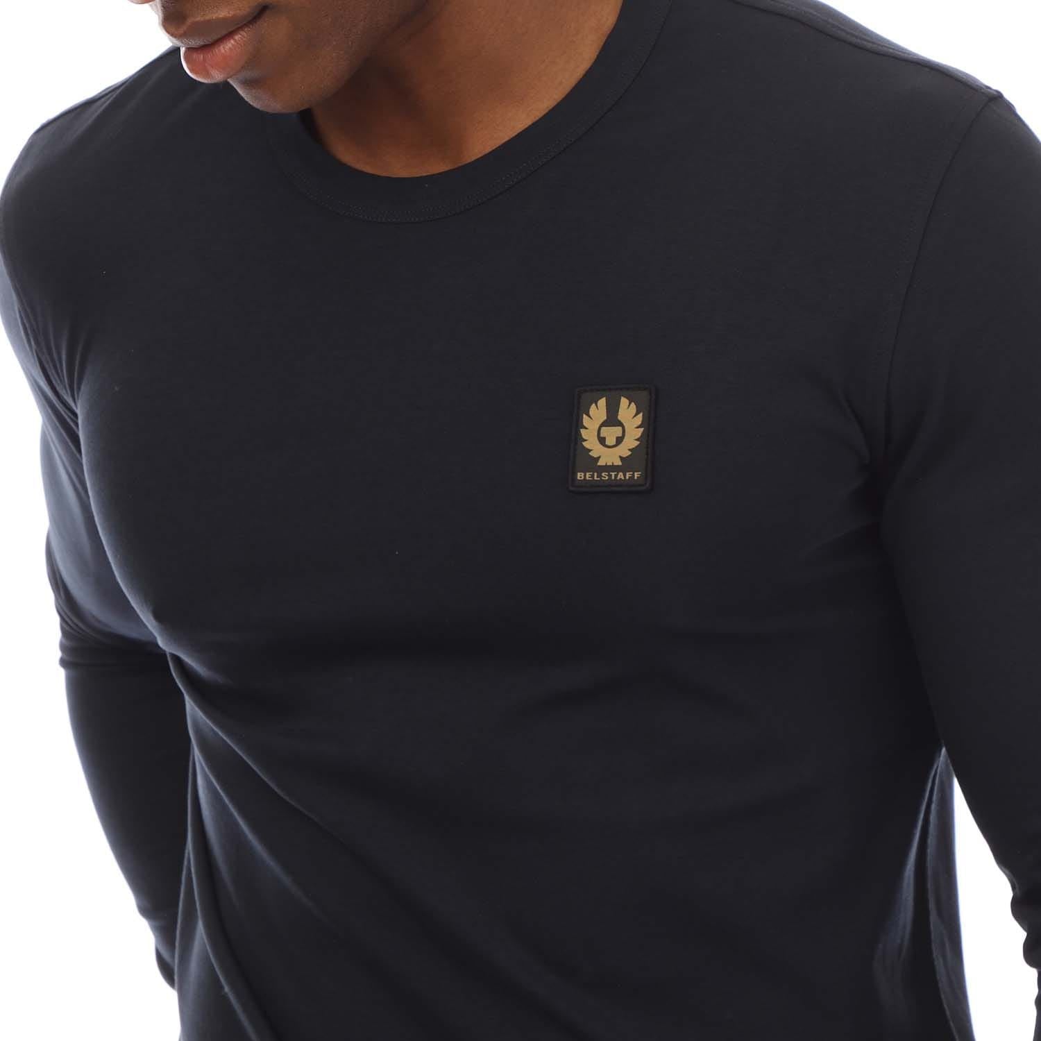 Mens Belstaff Cotton Jersey Long Sleeve T-Shirt in dark ink.