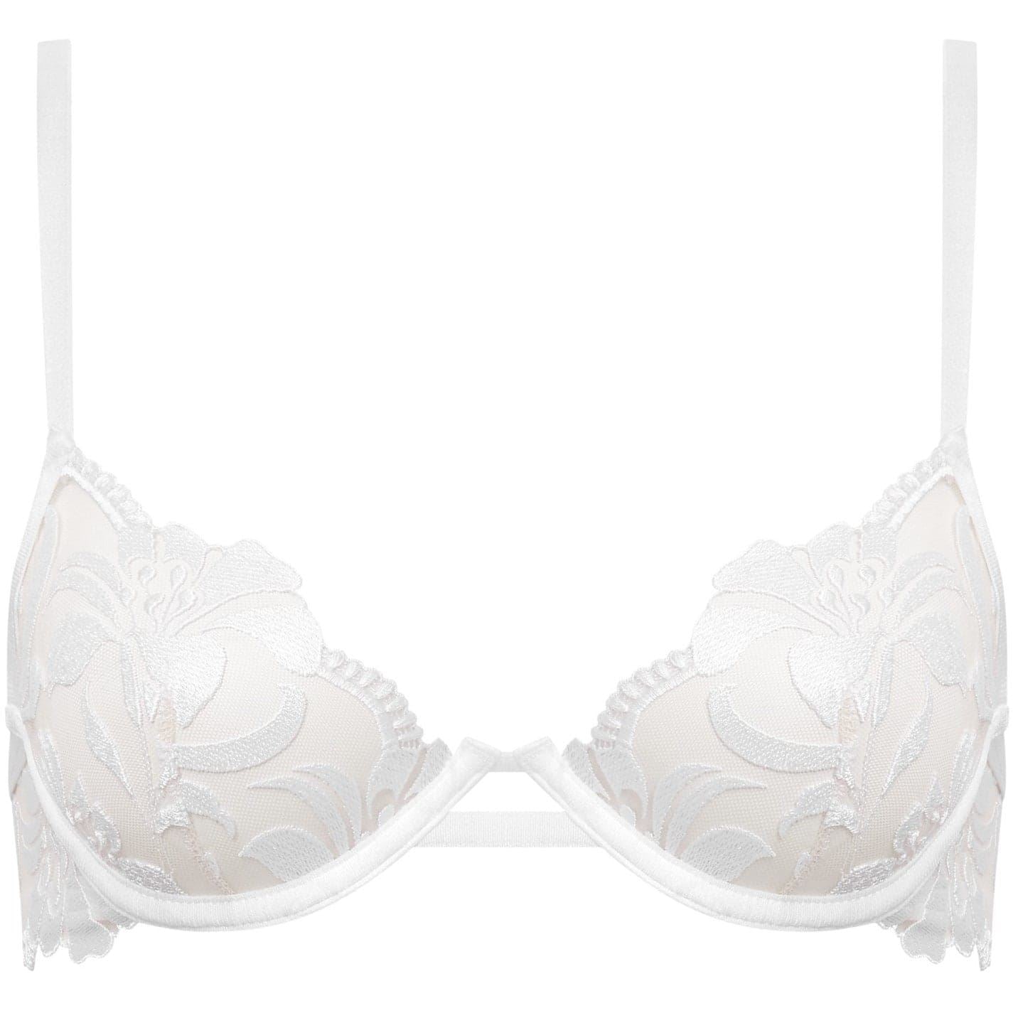 A fresh update to an already popular style, the Leonora Wired Bra is presented in hot coral— a new colour for the season and features delicate floral embroidery and sheer details. This exquisitely designed piece is finished with underwiring and adjustable straps and back to provide ultimate support. Complete the set with the matching briefs and thong.
